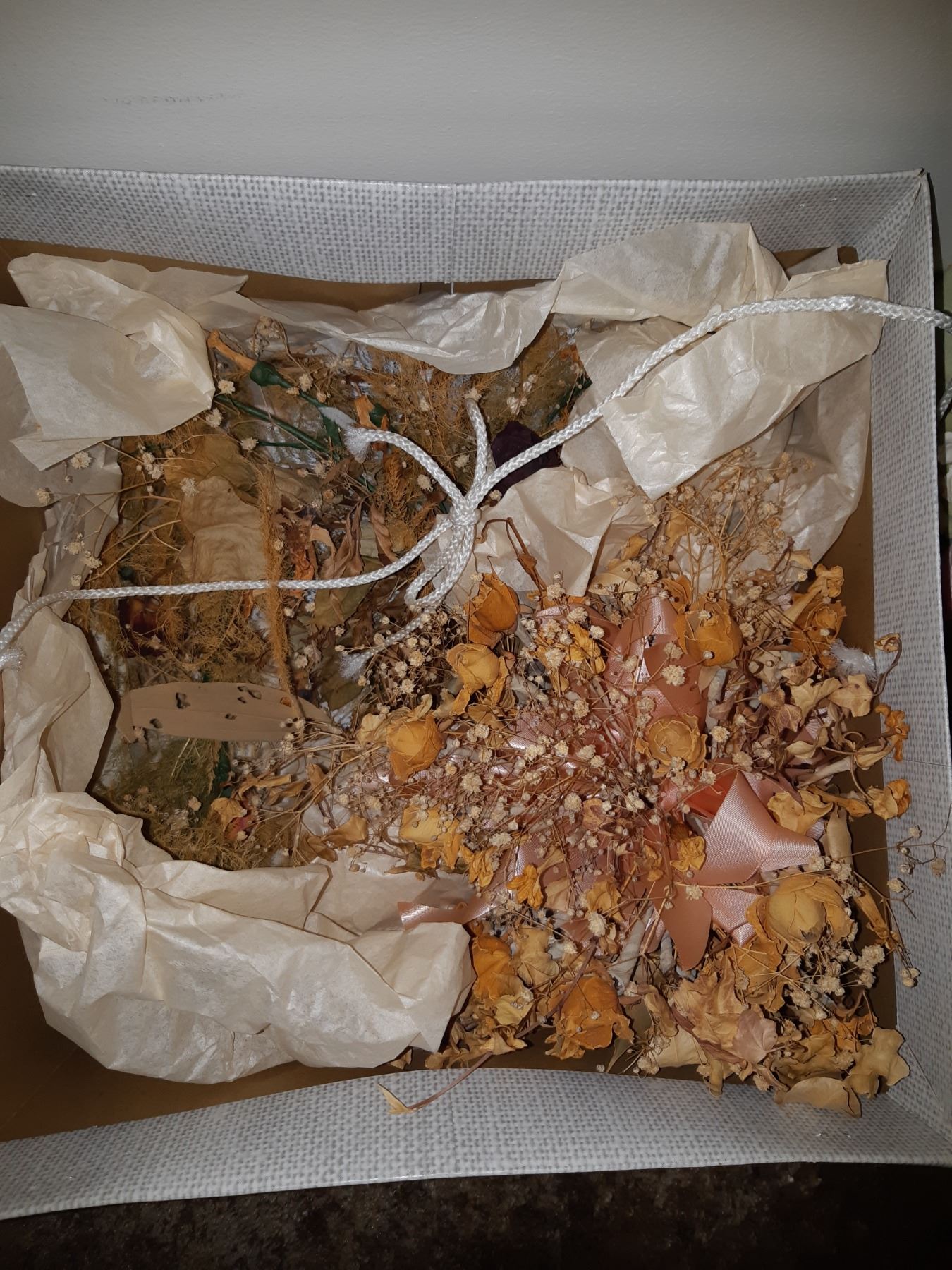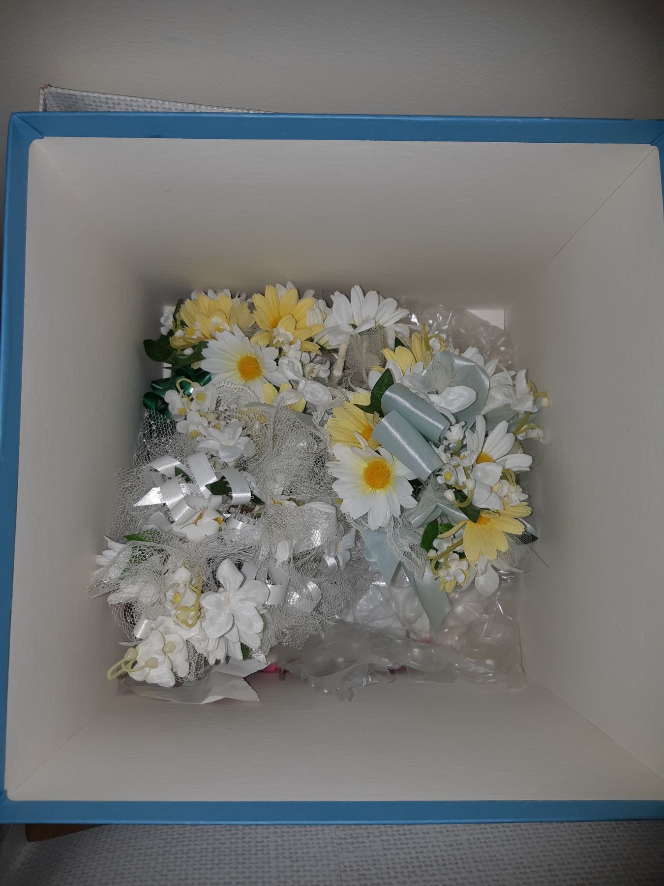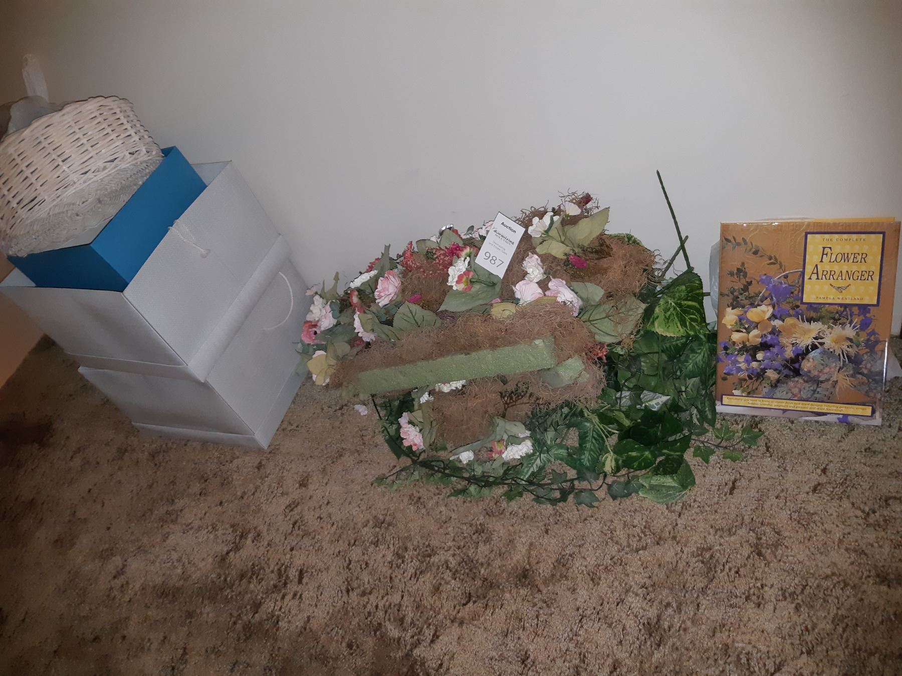 Faux floers, basket, floral book, storages boxes pickup 11am