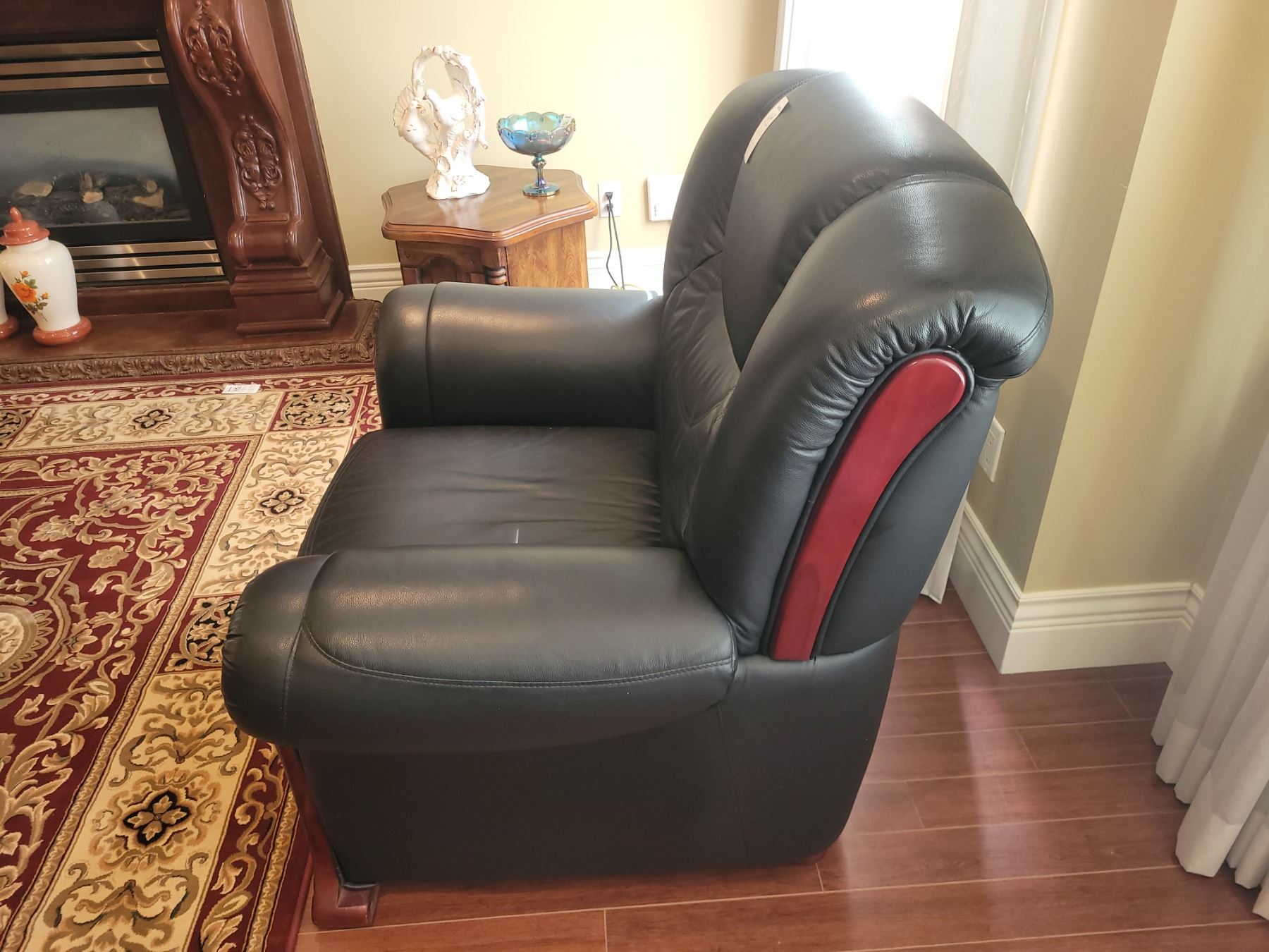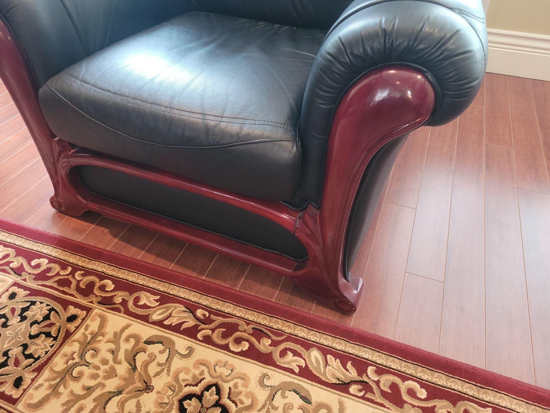 Faux leather chair with wood detail, 38x39x41. Pick up 11-12