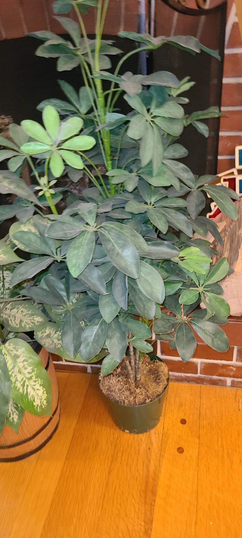 2 faux plants tallest 3' Pickup at 9 am