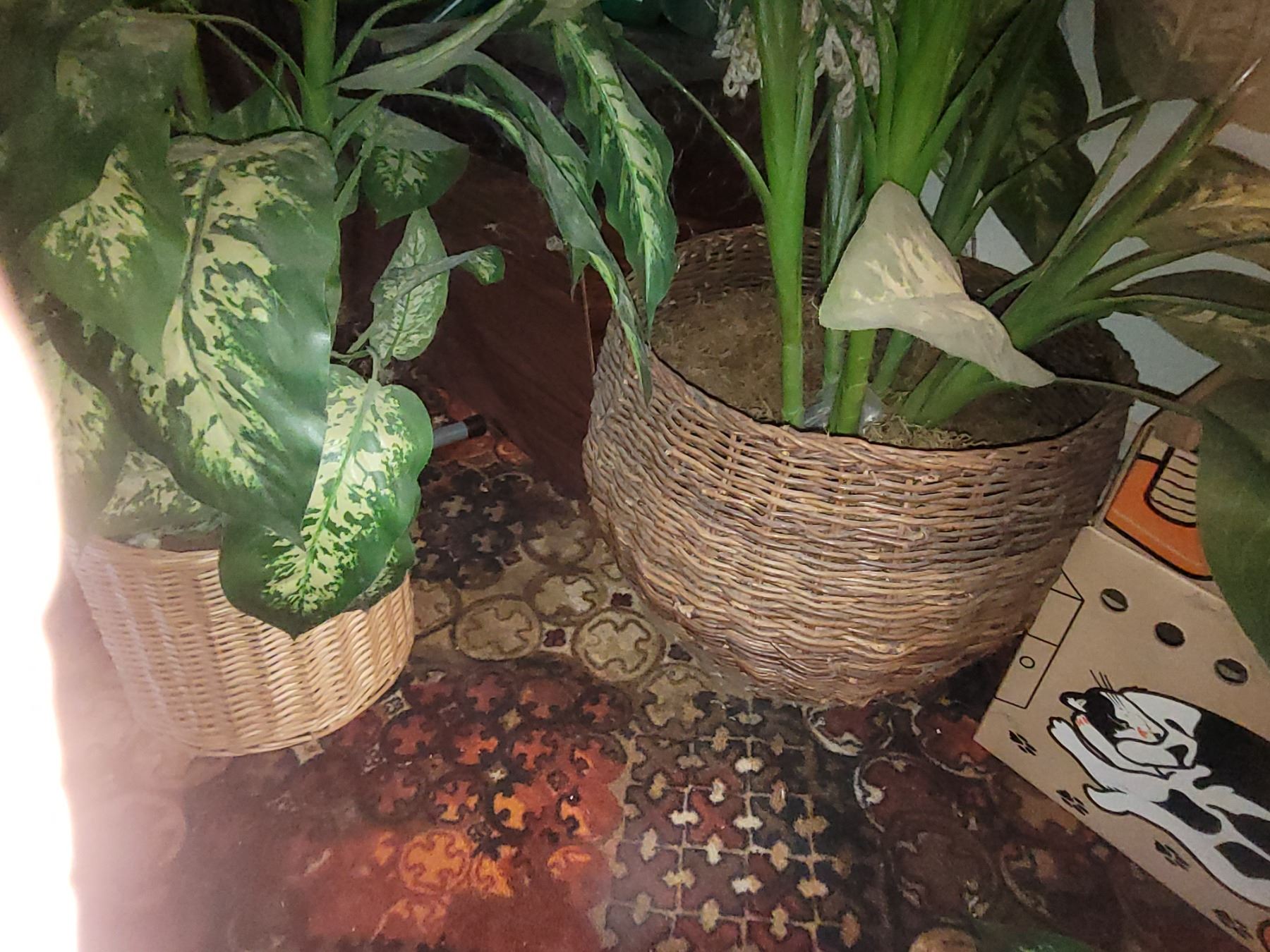 Two faux philandendrons, tallest 63". Pick up 9-10
