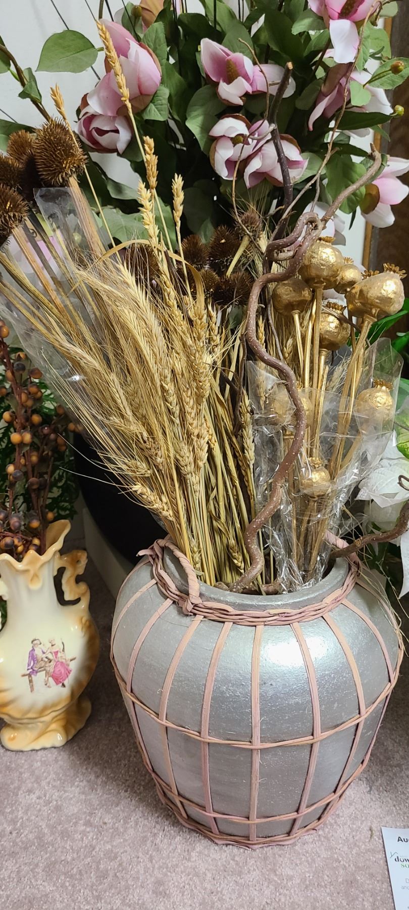 Teassel, white ponsietas and more. Please bring packing materials. Pick up at 11 am.