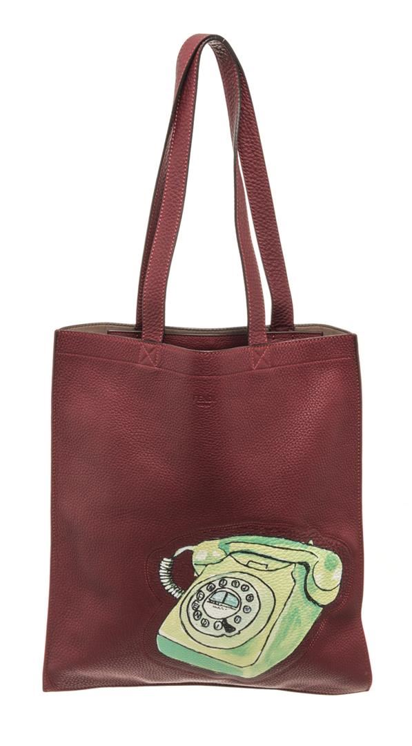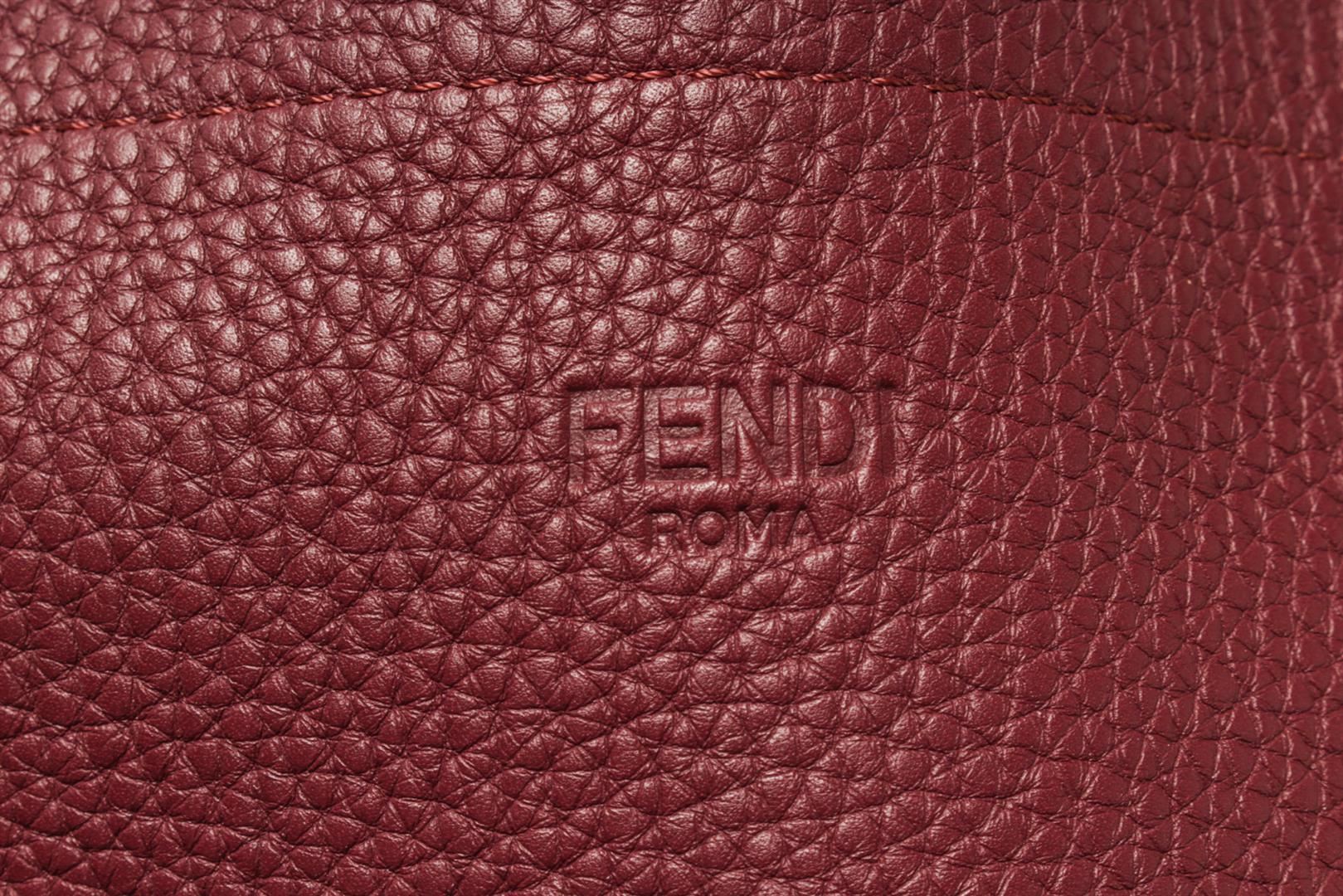 Fendi Brown Leather Logo Shopper Tote Bag. All available information is listed in the description and shown in the photos. Fendi Brown Leather Logo Shopper Tote Bag with shoulder strap, telephone print on the front of leather, suede lining, zipper interior pocket and silver hardware.