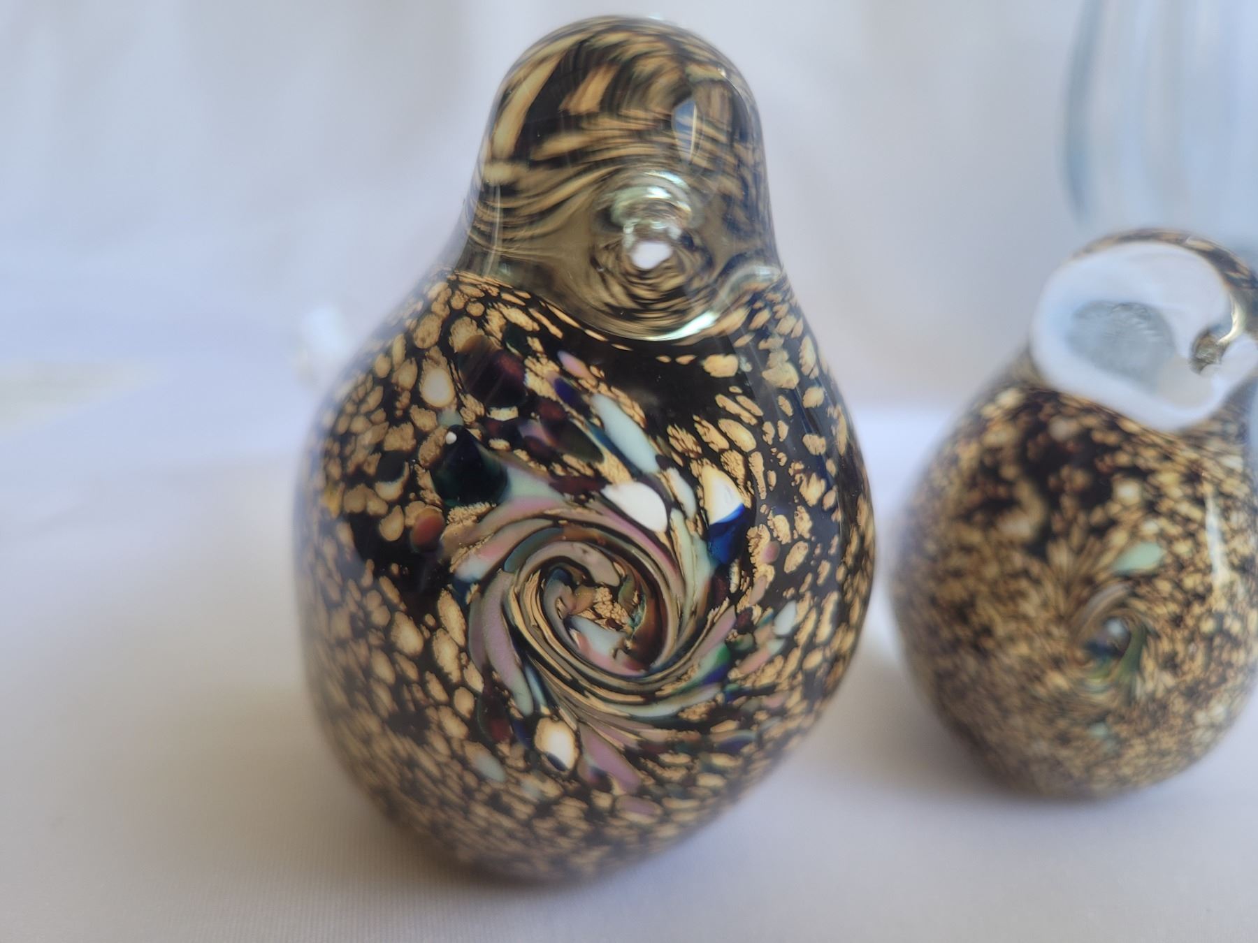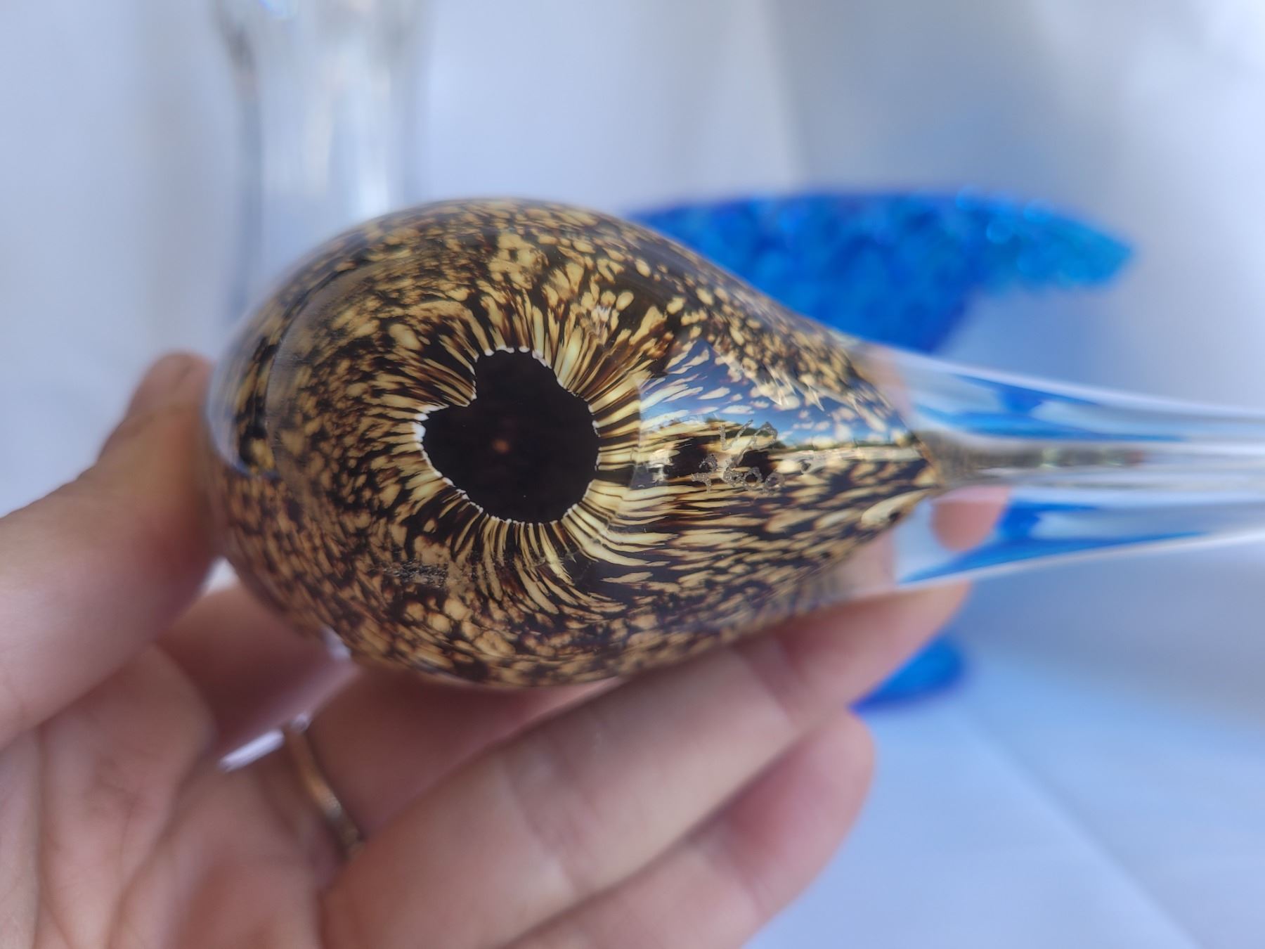 Clear glass vase 10". Glass birds, Fenton glass footed dish. Pickup at 9 am.
