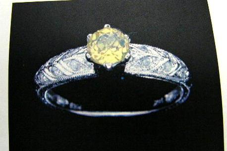 Fine yellow sapphire and diamond Lady's Ring 14 K white gold- sapphire is round, faceted approx. 0.75 carats, transparent, lemon yellow; diamonds are full cut approx. 0.15 carats- estimated replacement cost $4,875 (12)