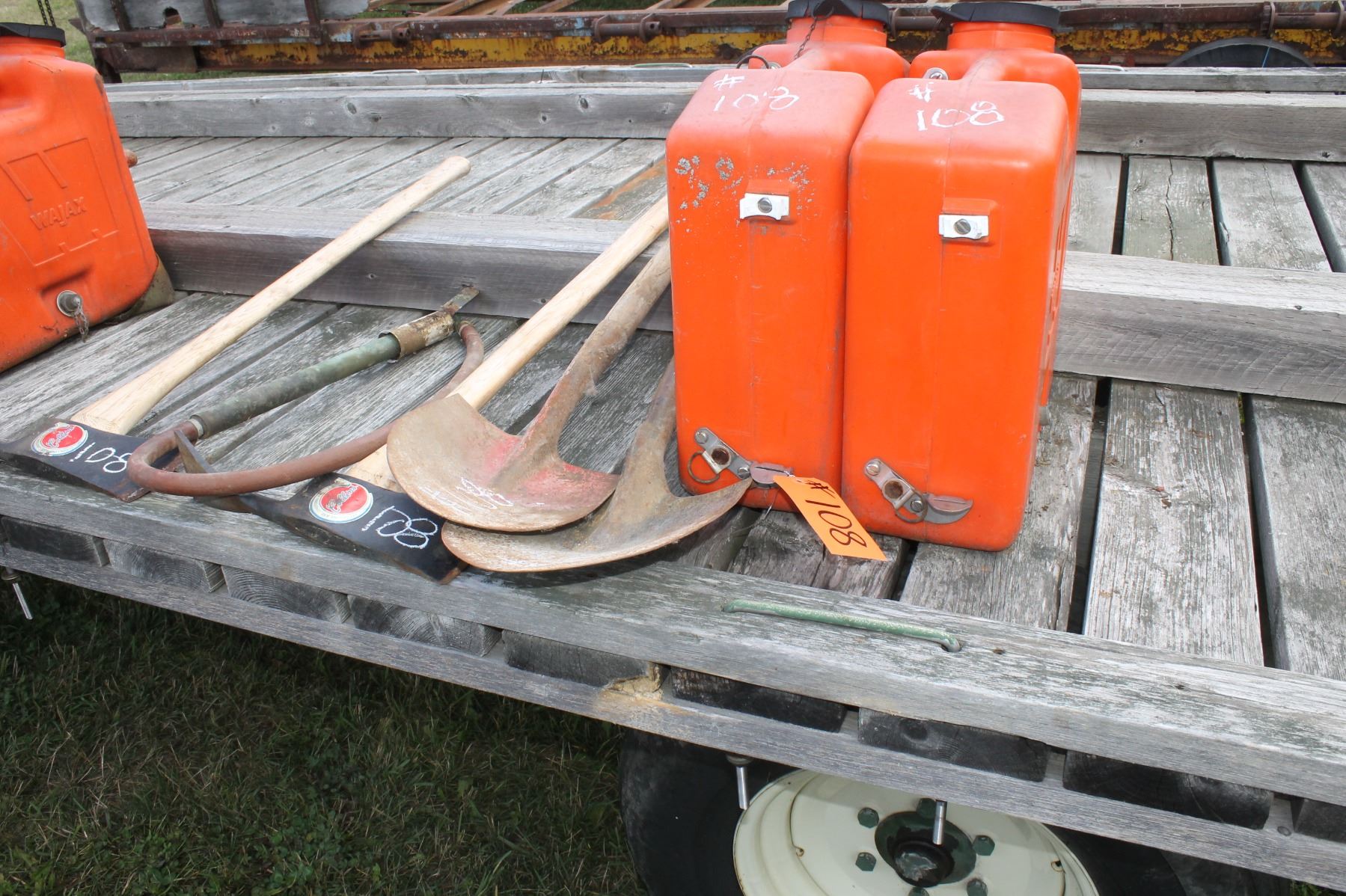 Firefighting Equip, c/w 2 Fire Axes, 2 Shovels, 2 Water Tanks, 1 Pump