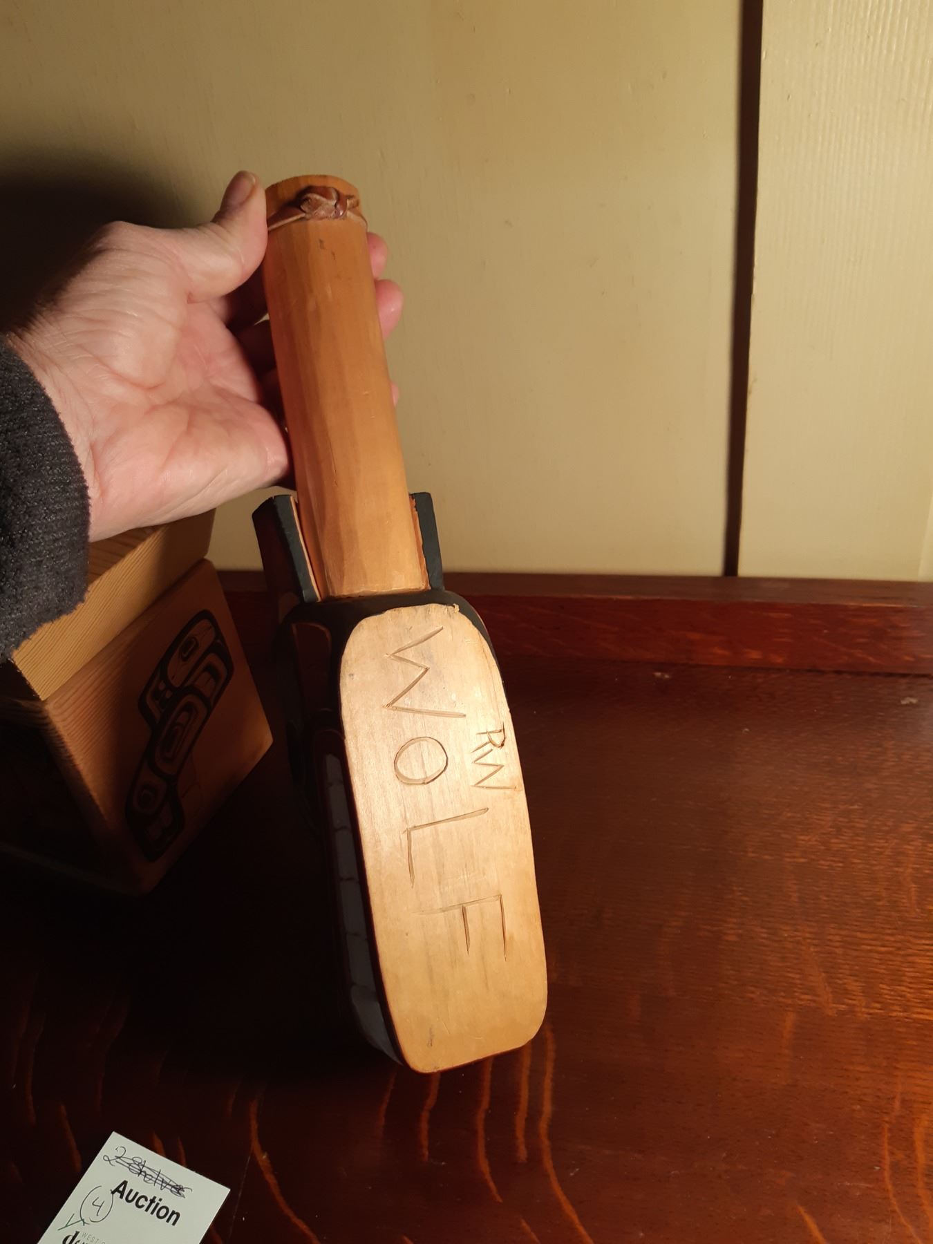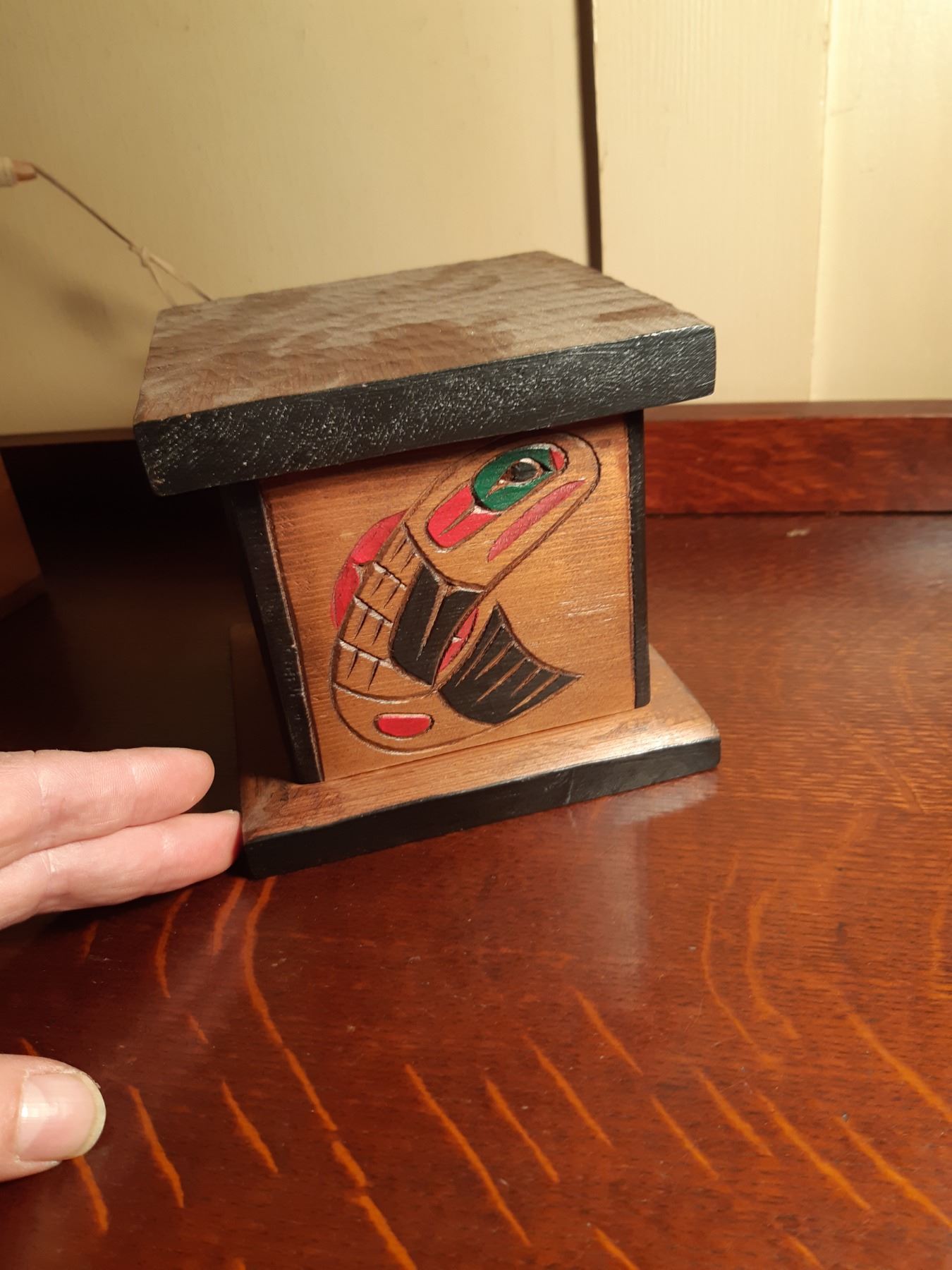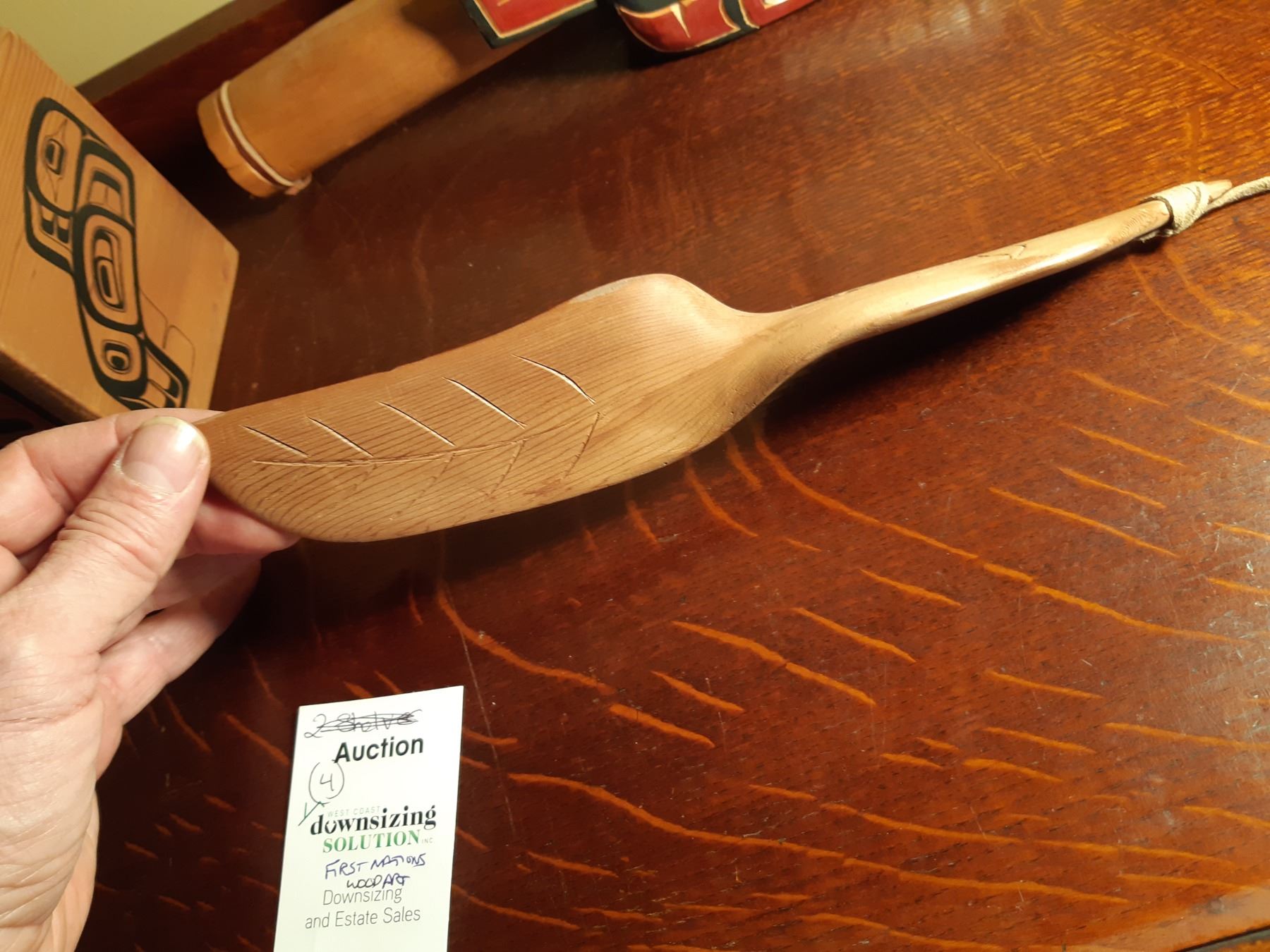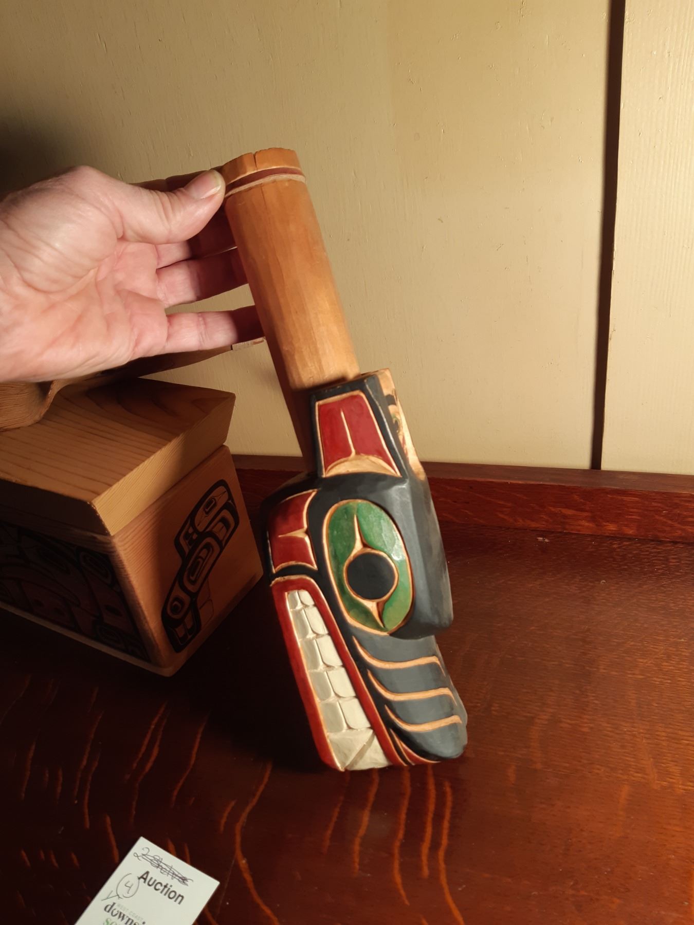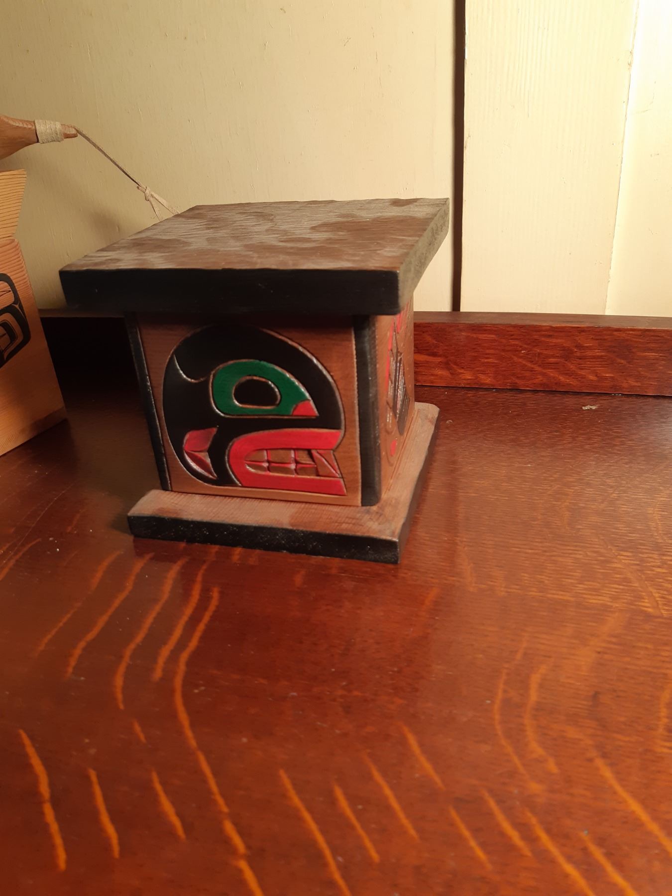 Rattle, 2 Carved lidded containers. Pickup at 9 am