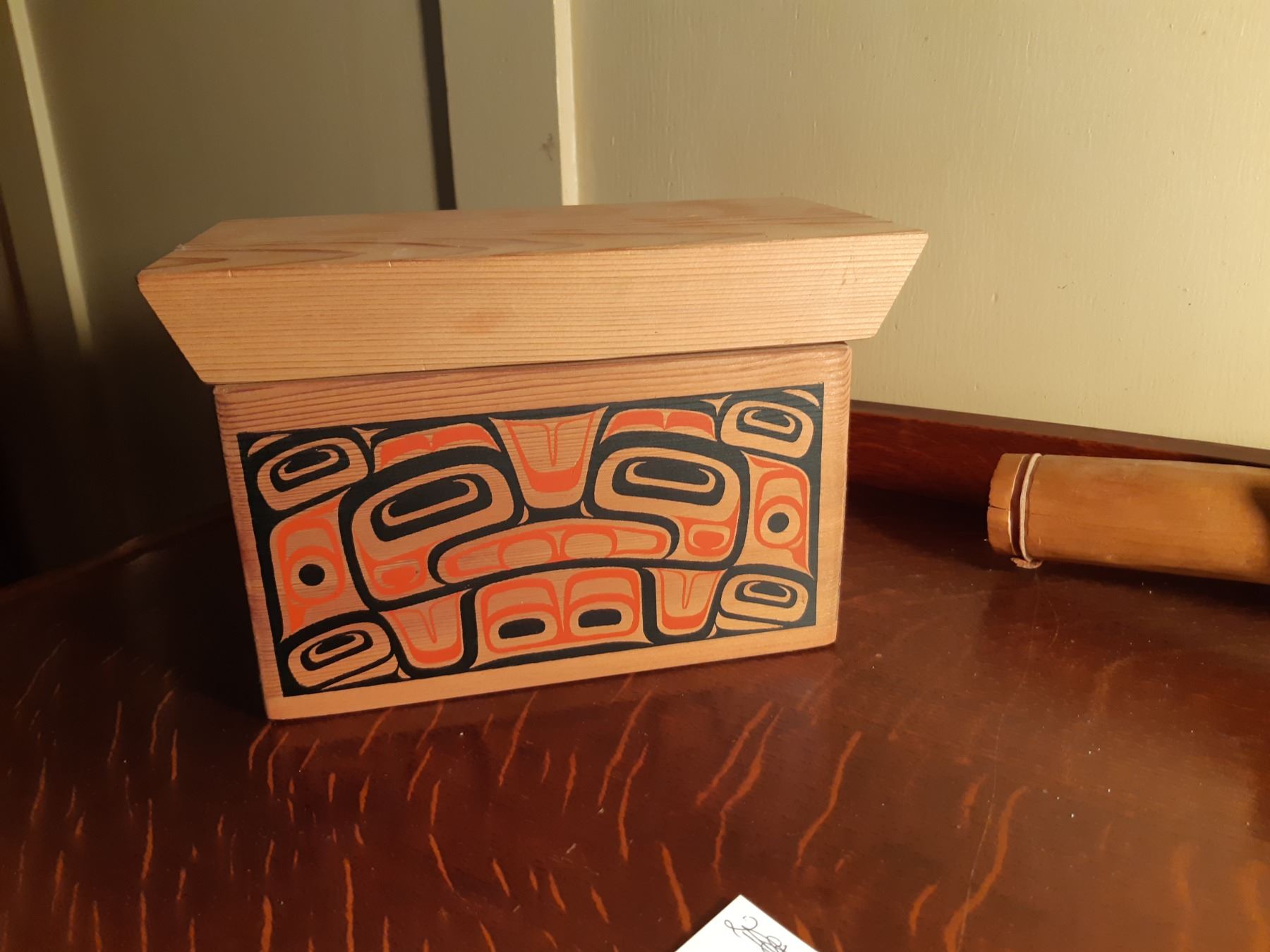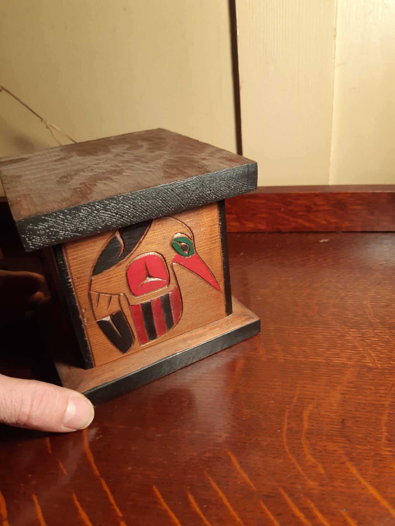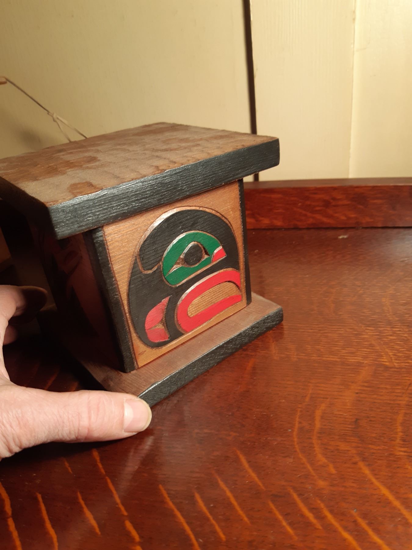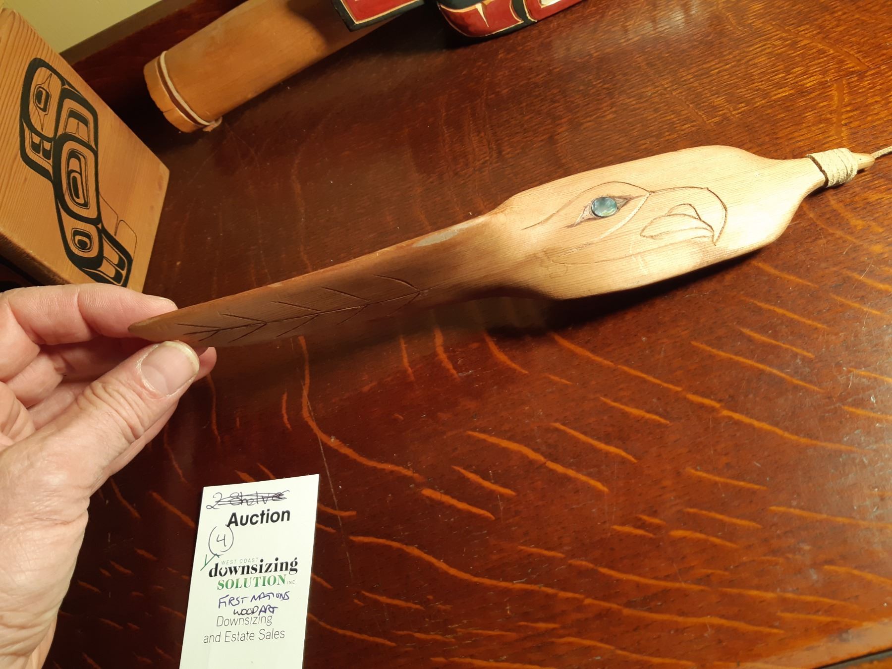 Rattle, 2 Carved lidded containers. Pickup at 9 am