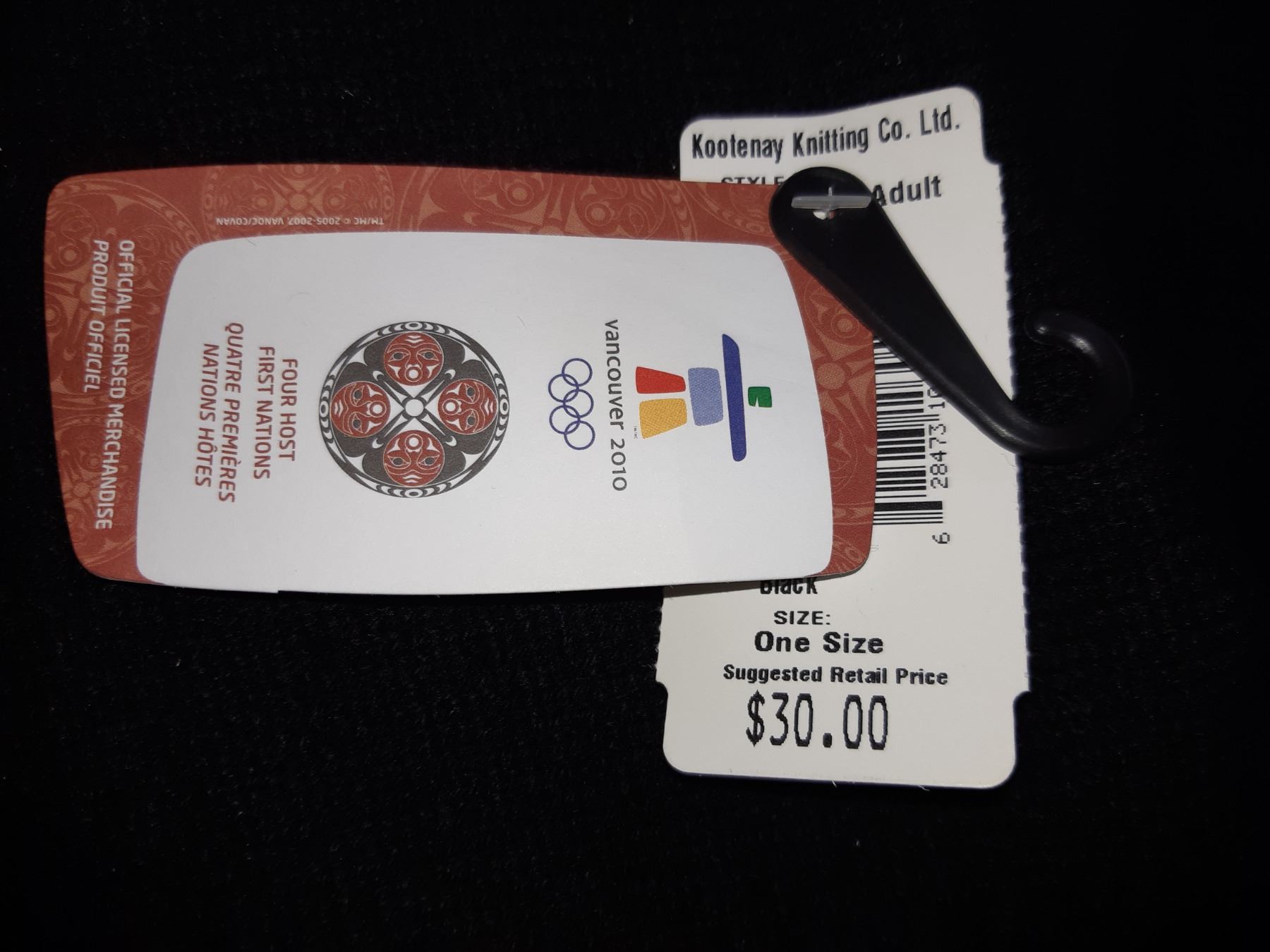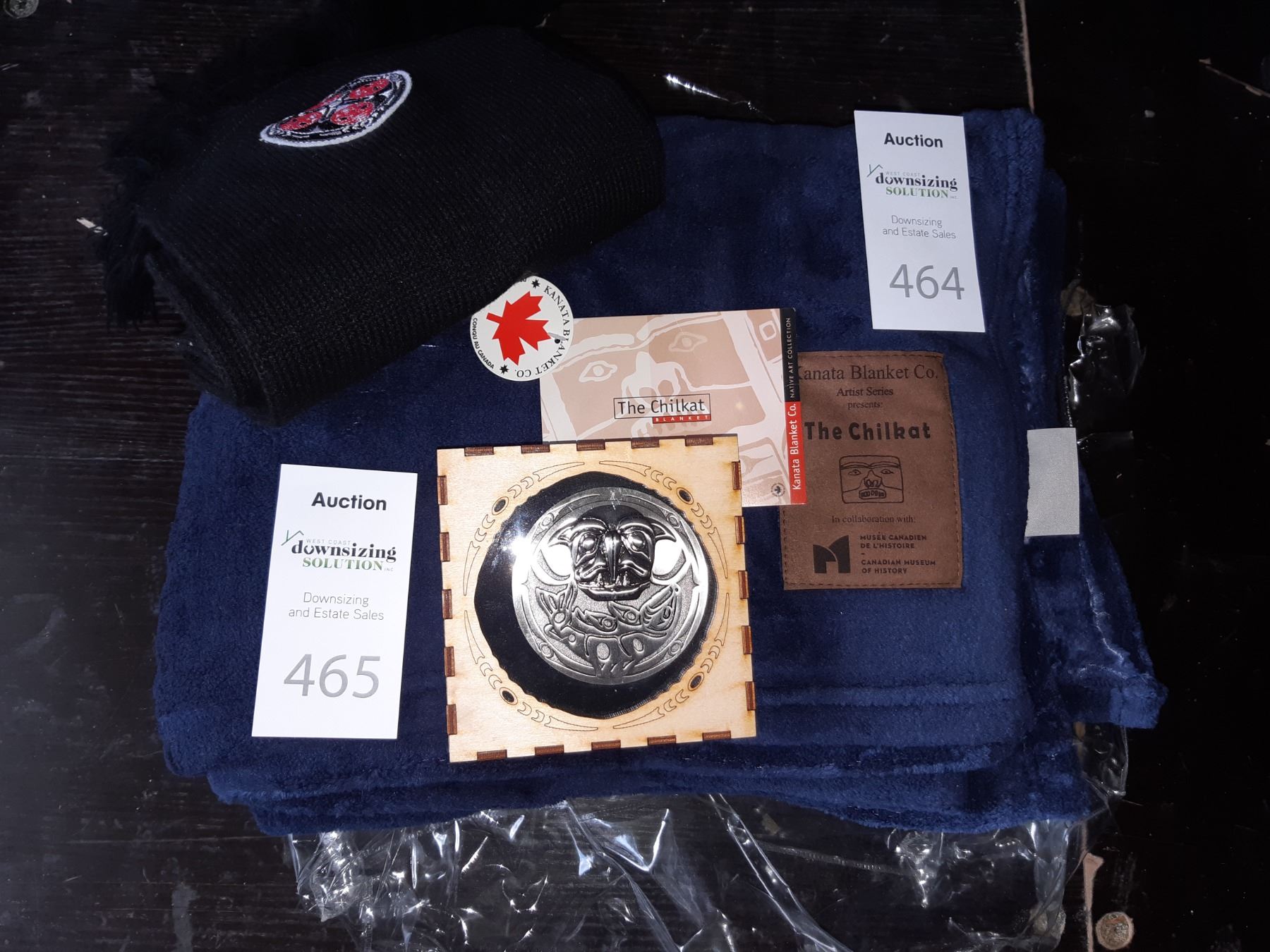 First Nations Kanata blanket, Surviving the Flood pin, 2010 Olympics scarf. Pick up at 10 am.