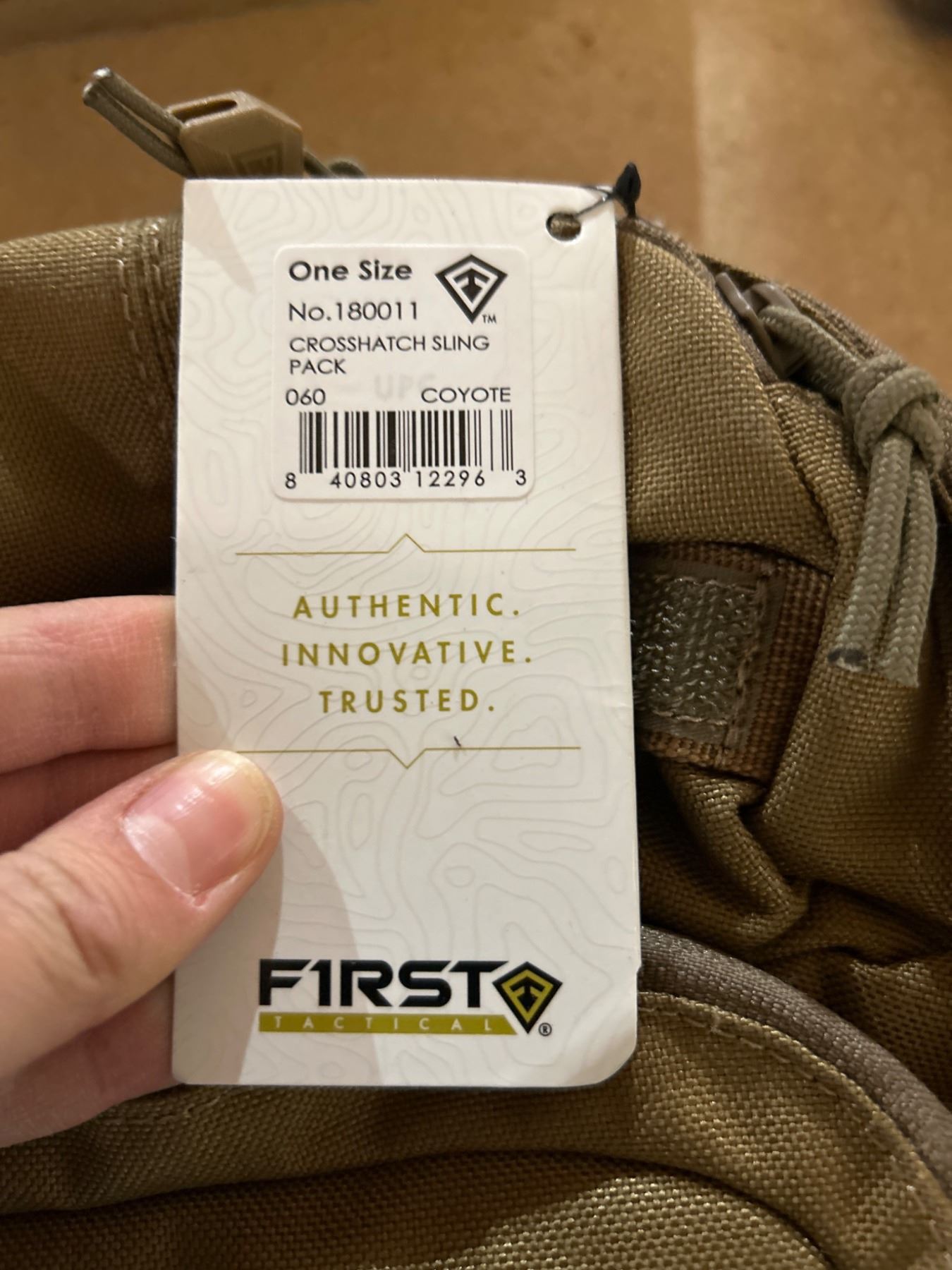 First Tactical Crosshatch Sling Pack in Coyote, Model No. 180011