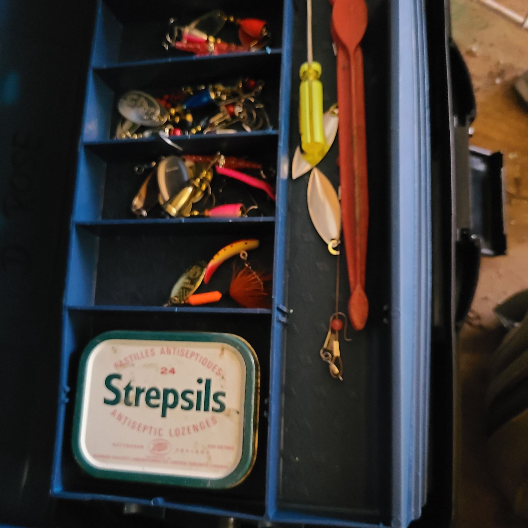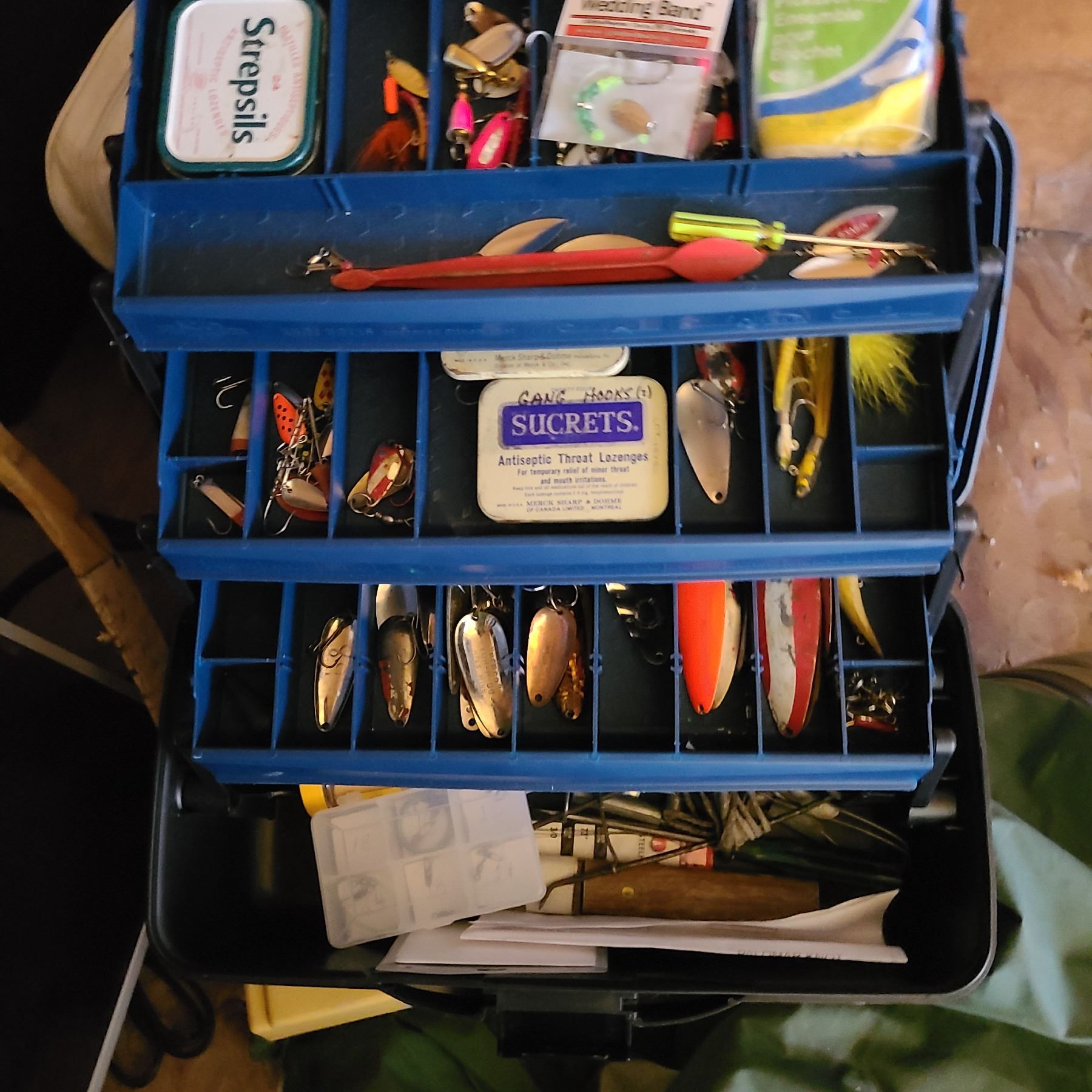 Fishing rods & reels tackle box with tackle, empty tackle boxes. Net, sports bag with leather baseball gloves,. Pickup at 11 am