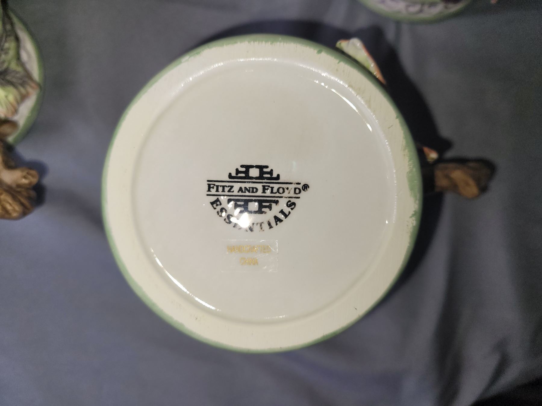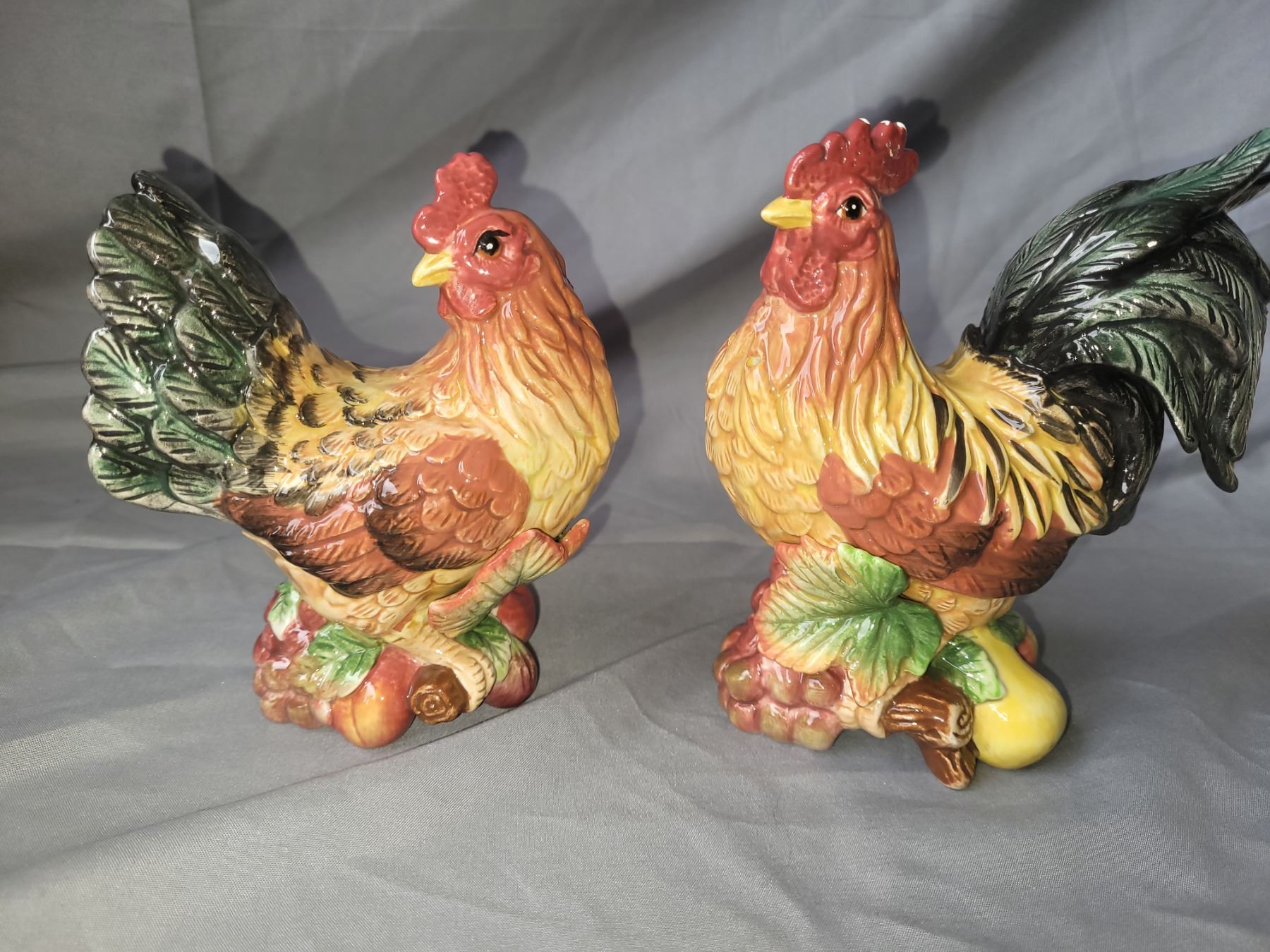 6 x F&F coffee mugs, F&F rooster salt and pepper, F&F creamer jug, Boxed 2 piece ceramic chip & dip . Pickup at 10 am