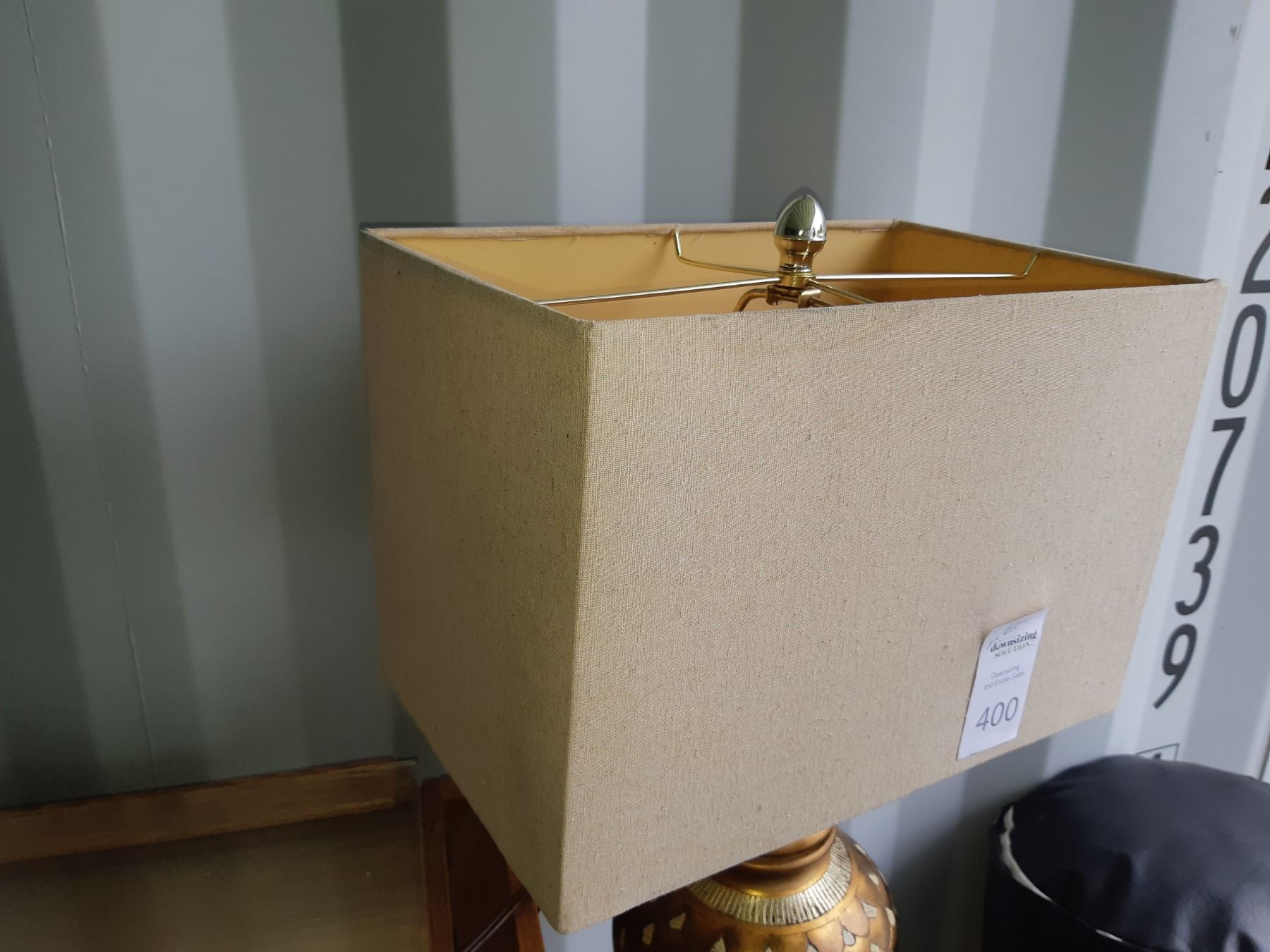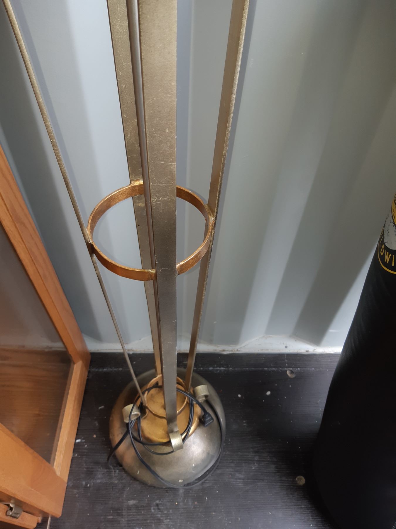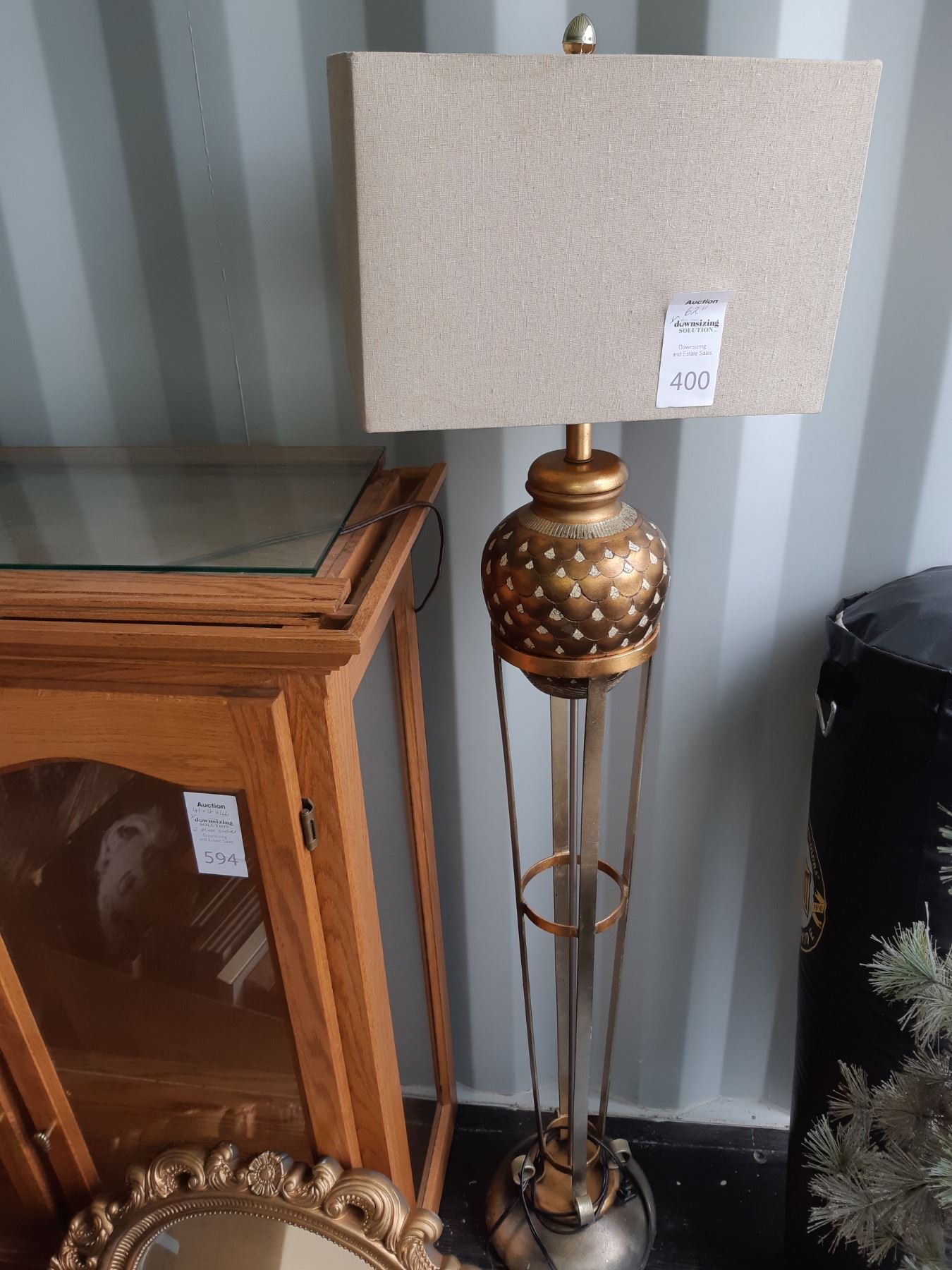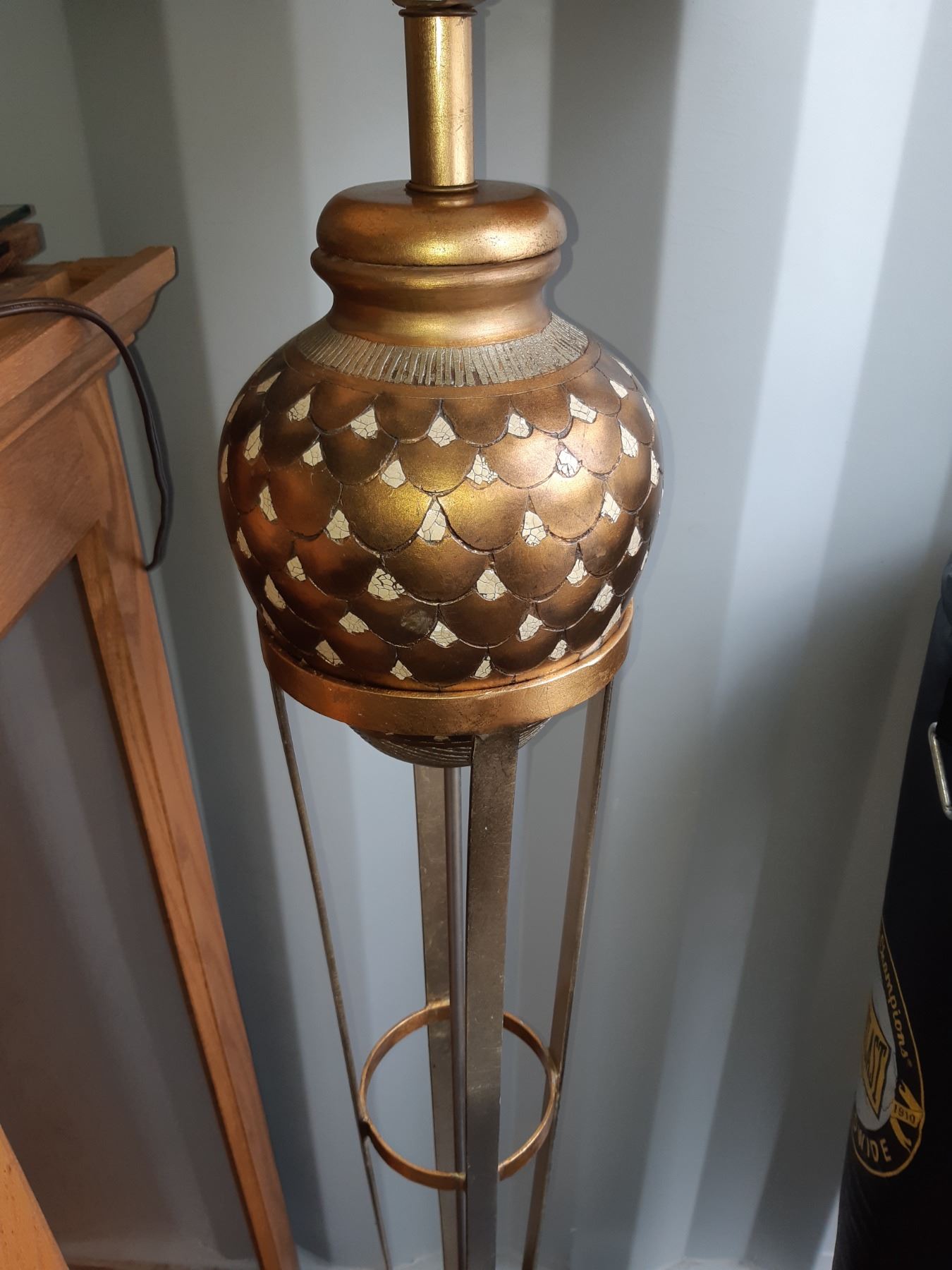 Floorlamp with tripod typle metal base, note shade has stain. 62" untested. Pickup at 11 am