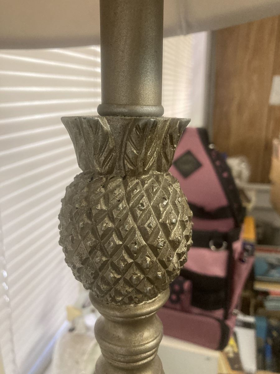 Floor lamp measuring 62”, 2 table lamps and 2 adjustable desk lamps with magnifying glass. Pickup 9 am