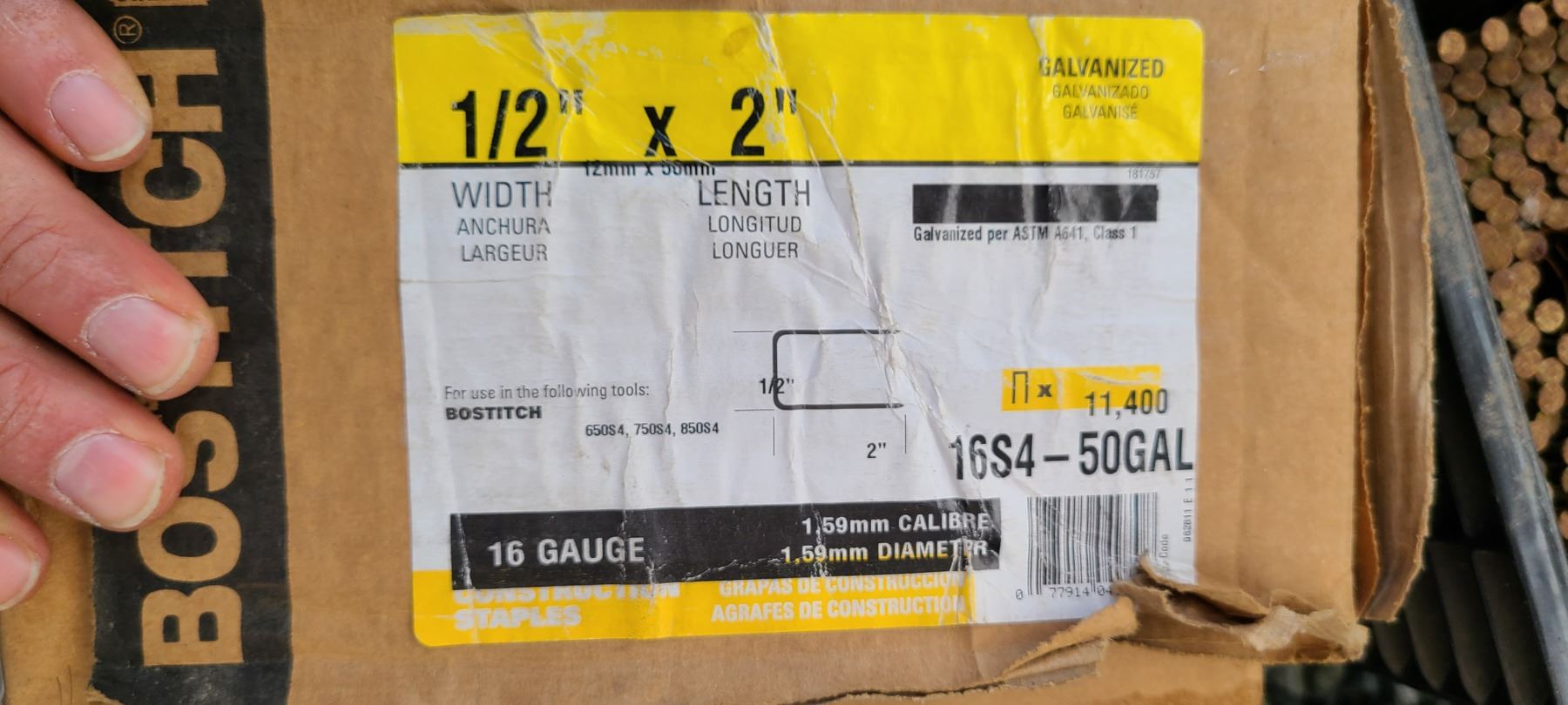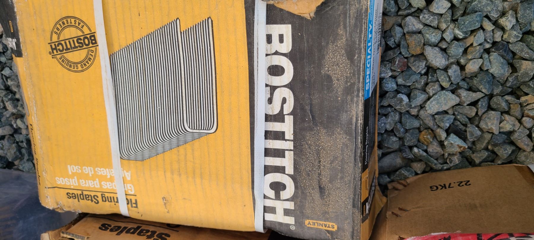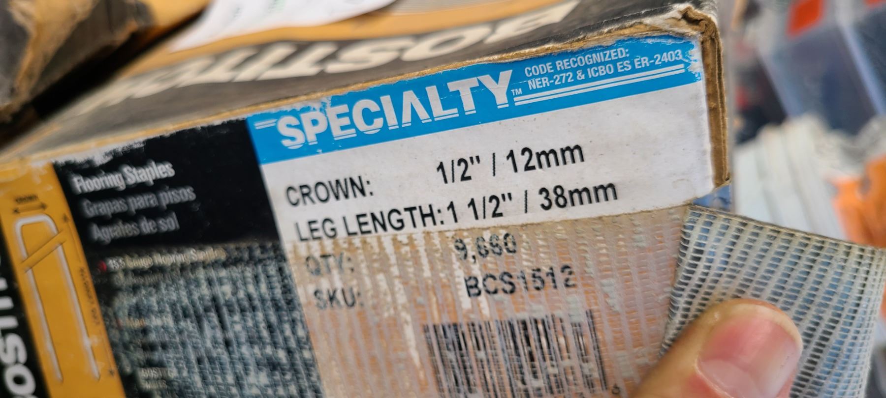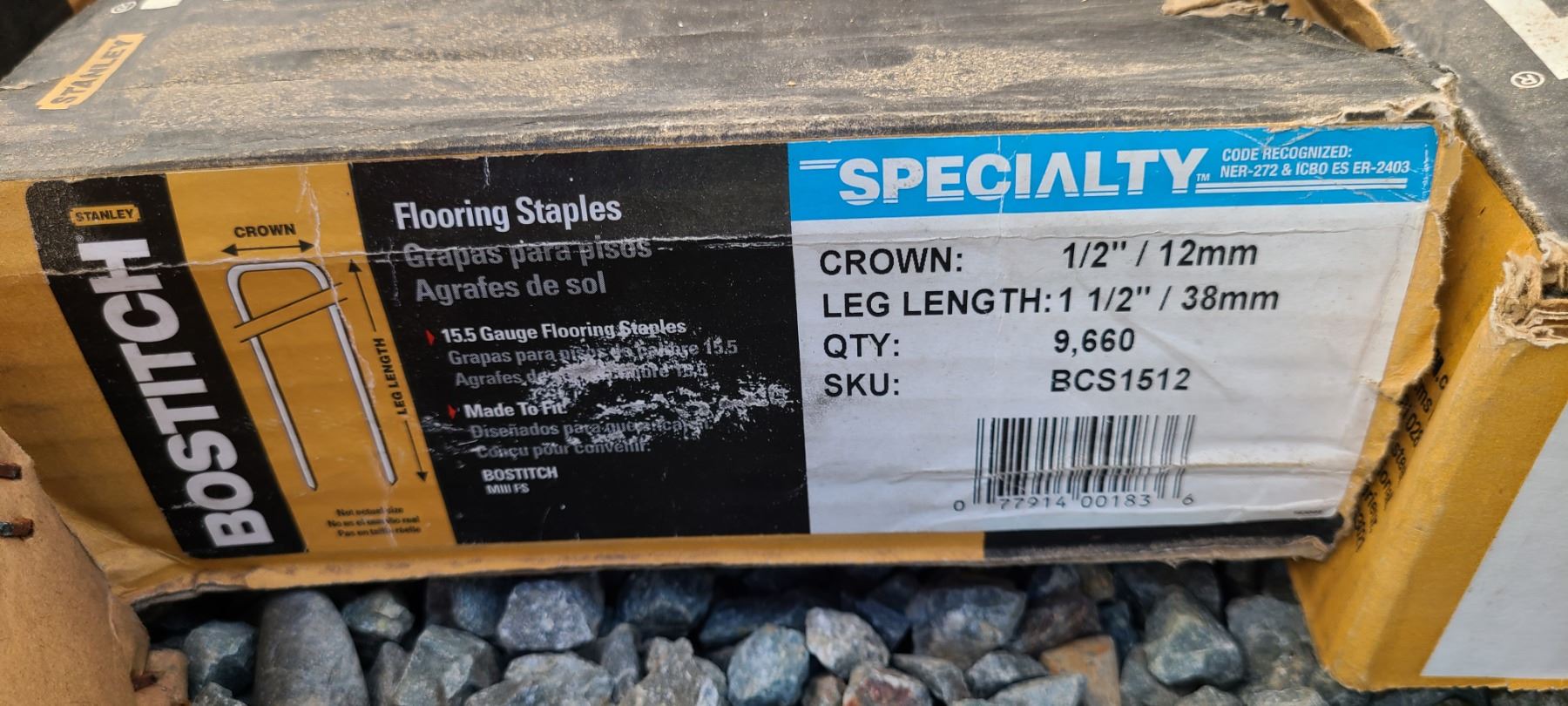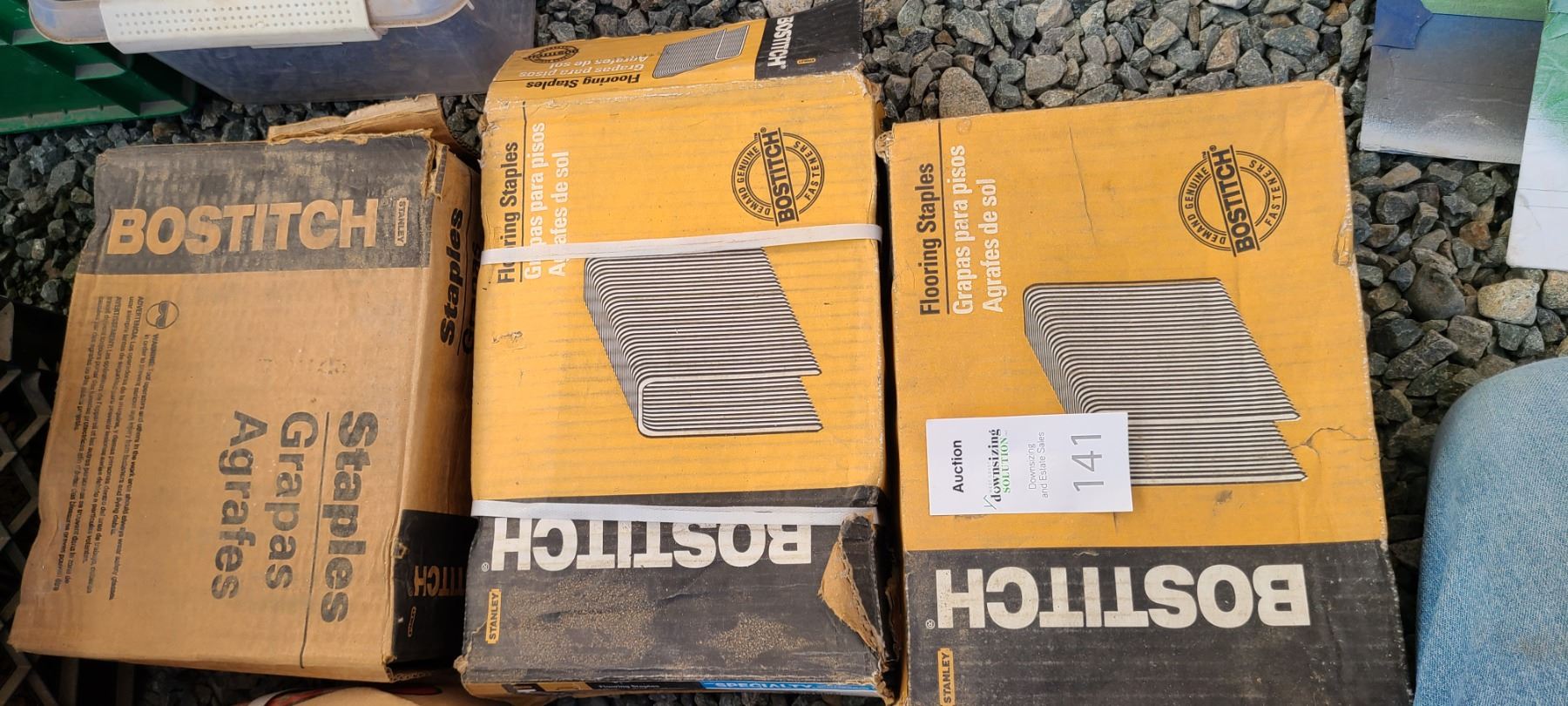 Three boxes of flooring staples for Bostitch gun. Pick up 10 - 12 pm