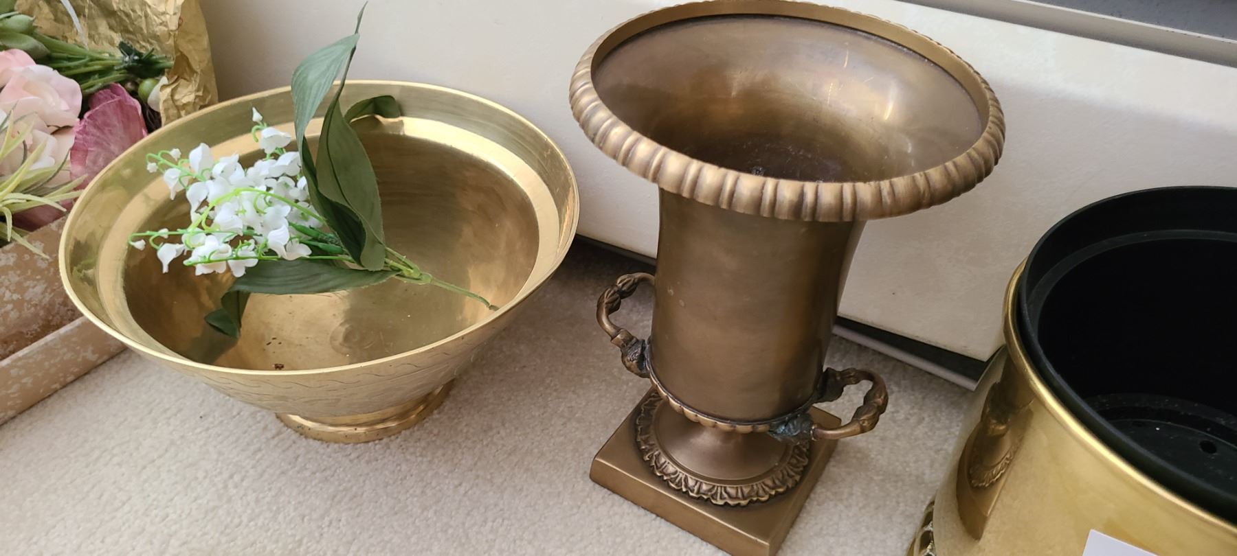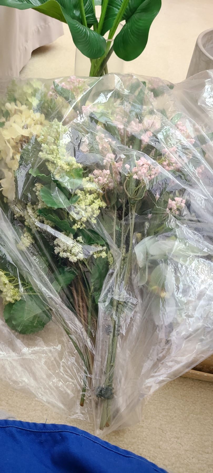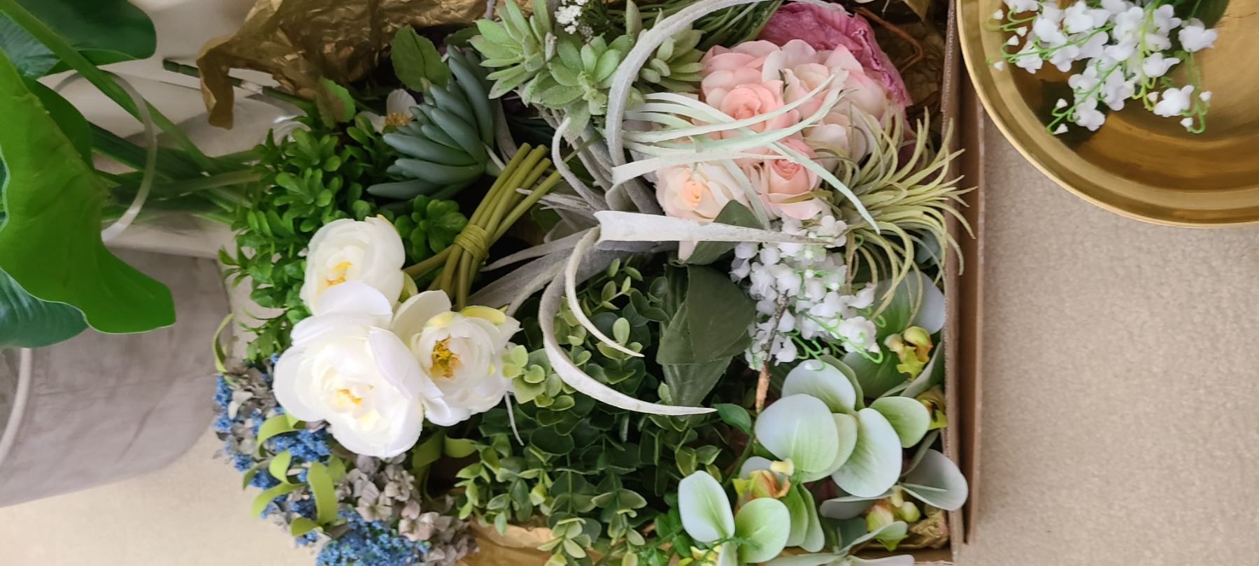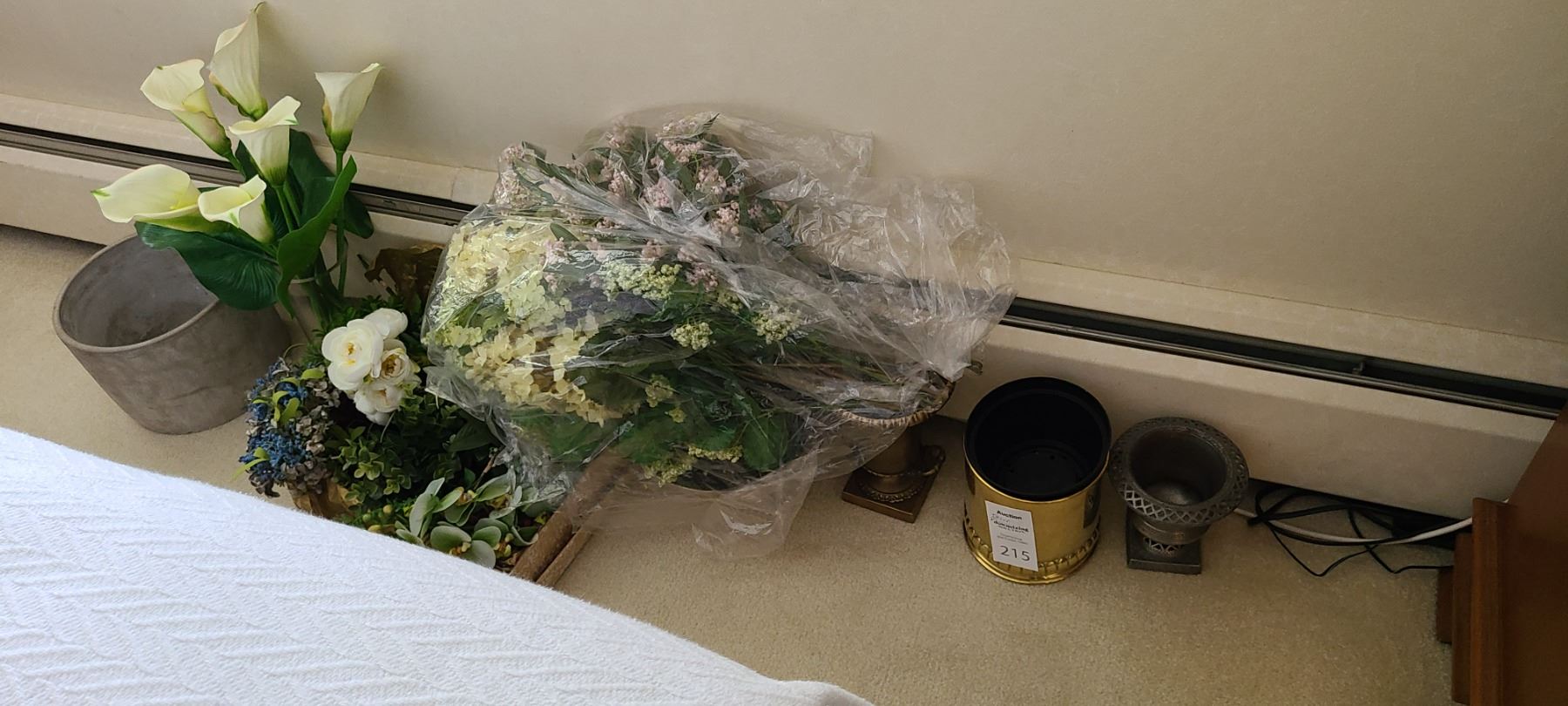 Assortment of artificial florals and containers of various shapes and sizes. Bring packing material and pickup at 9 am