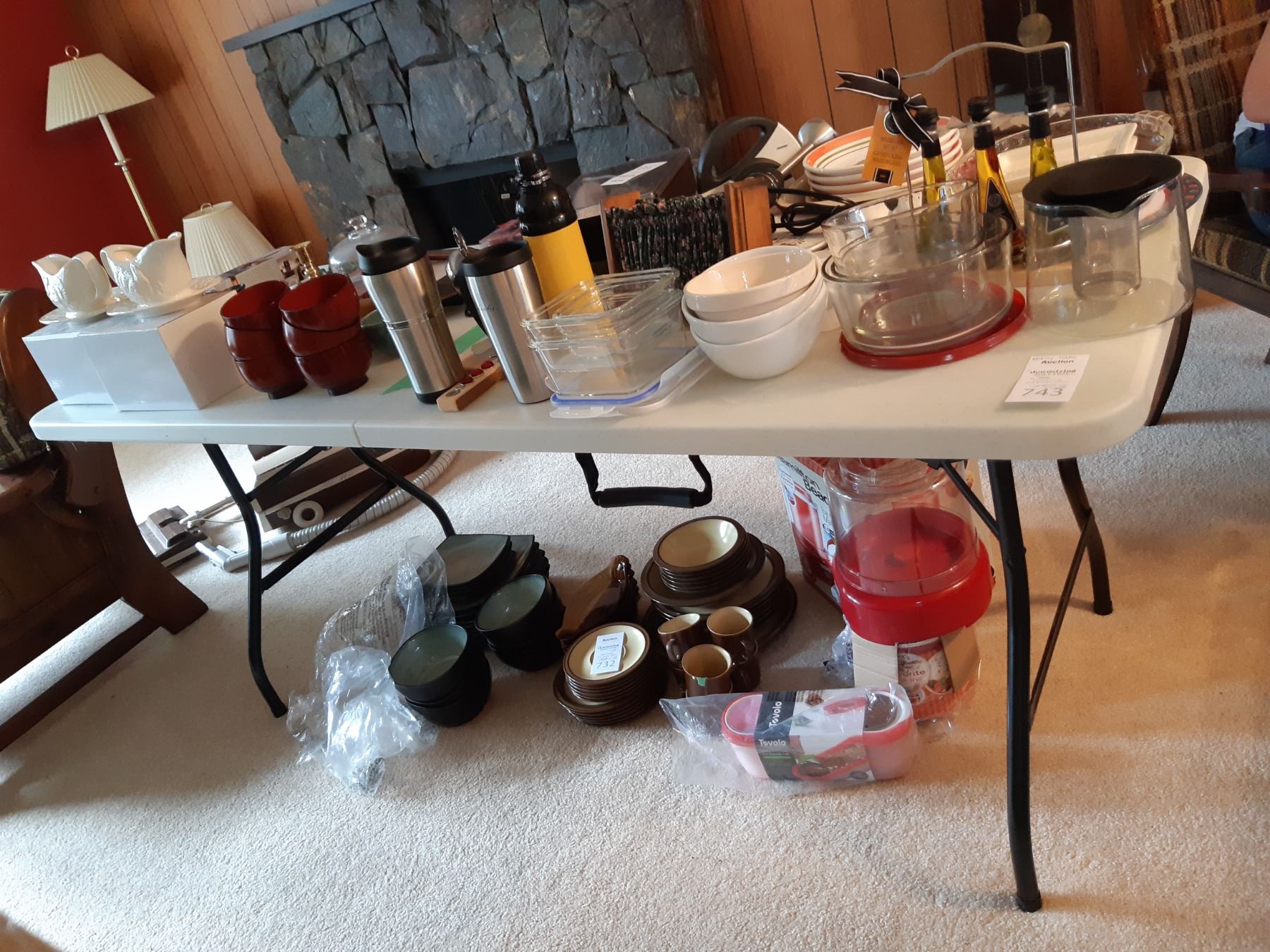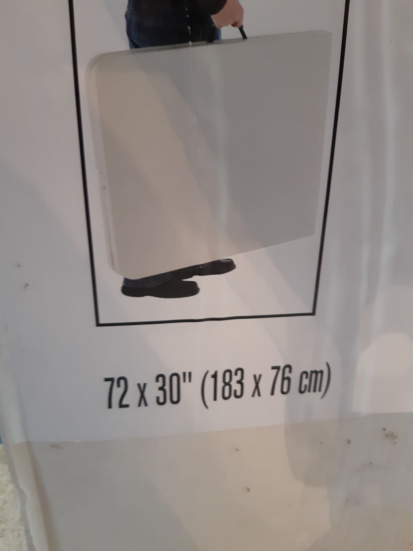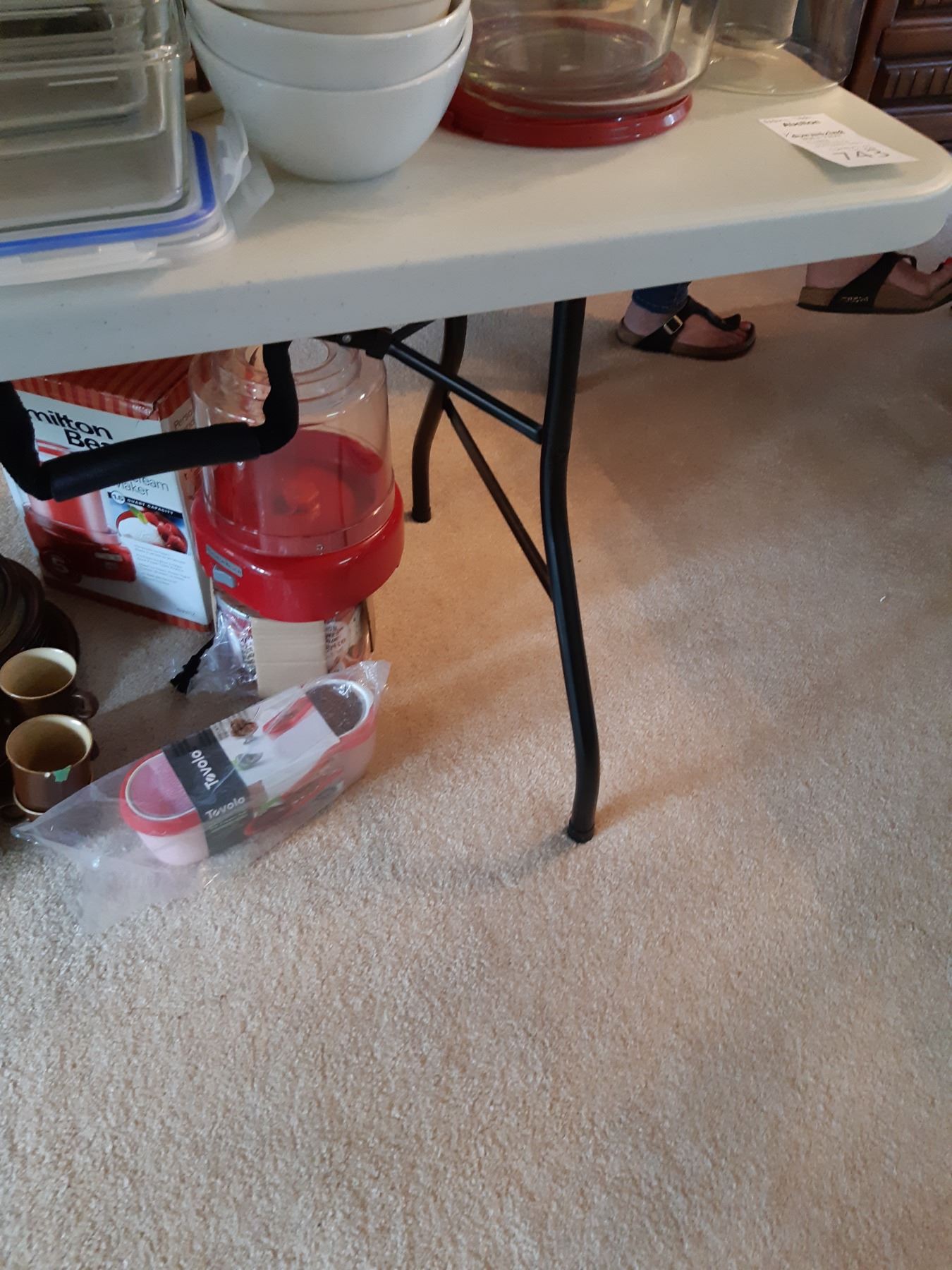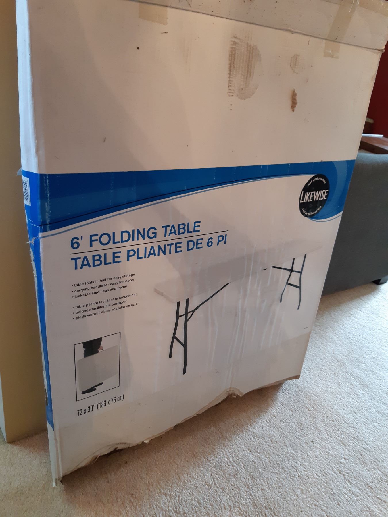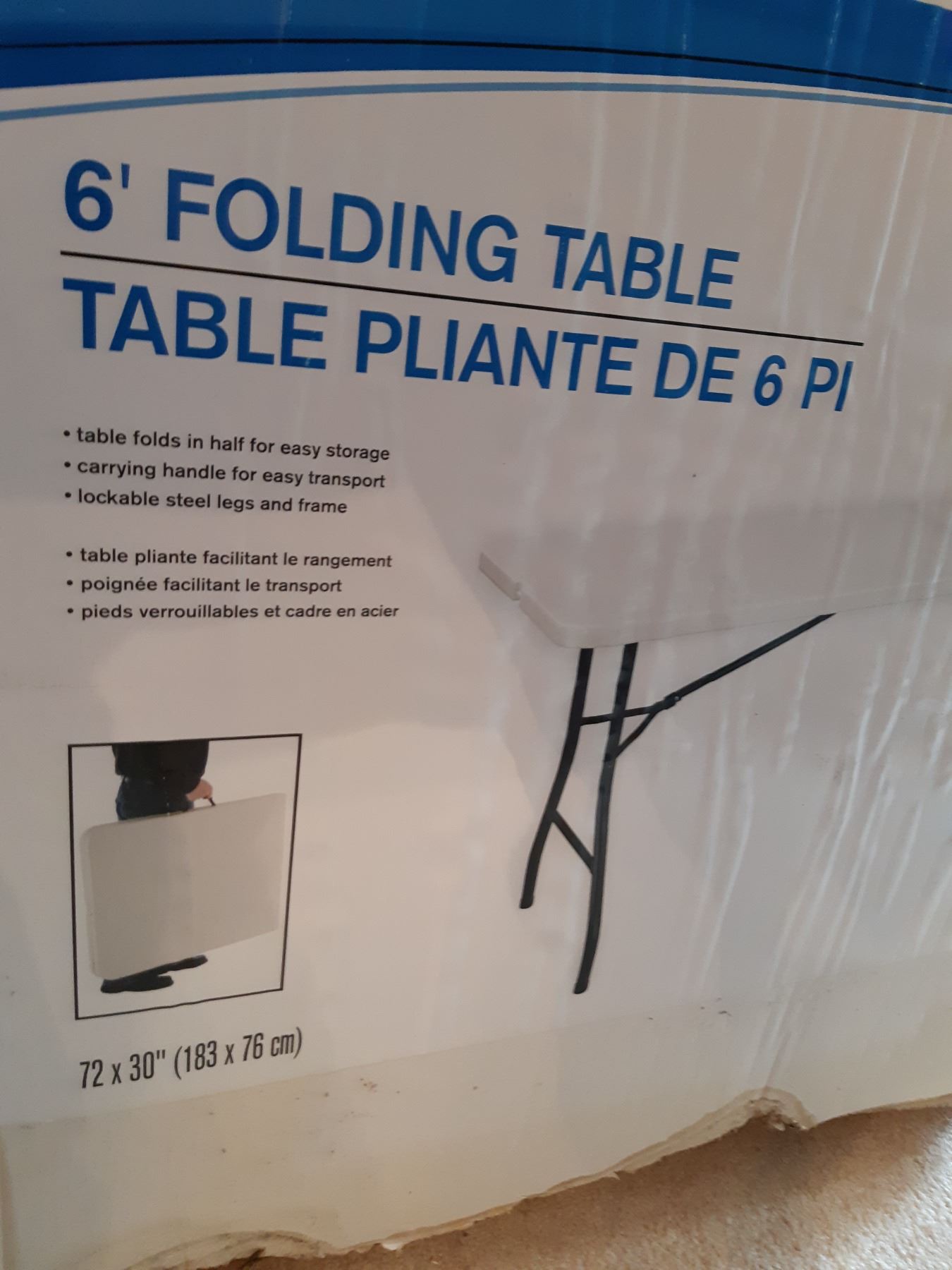 6' folding table by Likewise. Note contents on top and underneath are not included. Pickup at 10 am