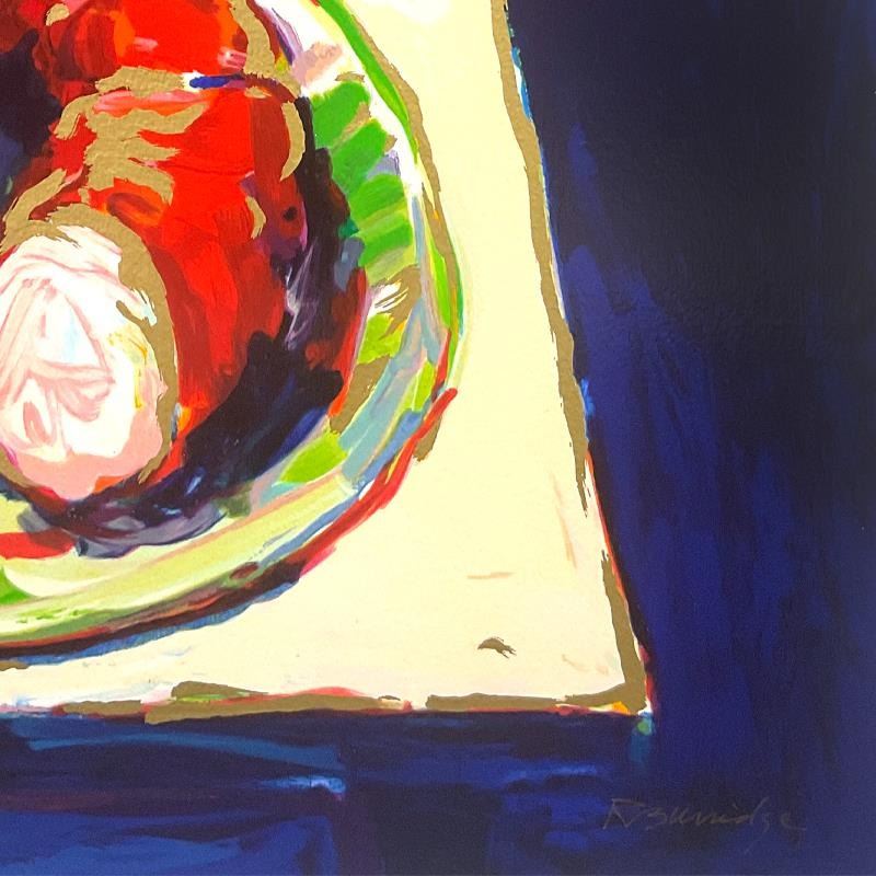"Food for Thought" is a limited edition serigraph on paper by Robert Burridge, HC numbered and hand signed by the artist. Includes Letter of Authenticity. Measures approx. 42" x 32" (border), 36" x 27" (image).