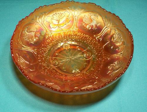 8" Fenton Carnival "Dragon & Lotus" Footed Bowl