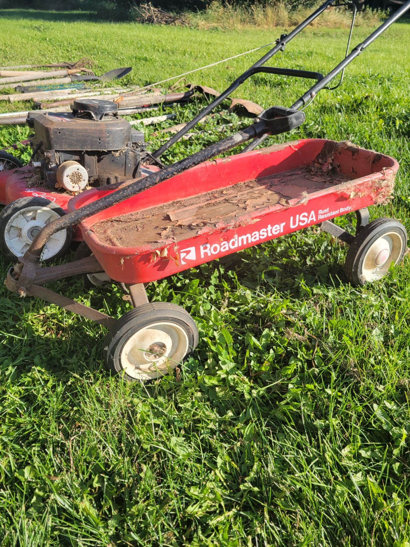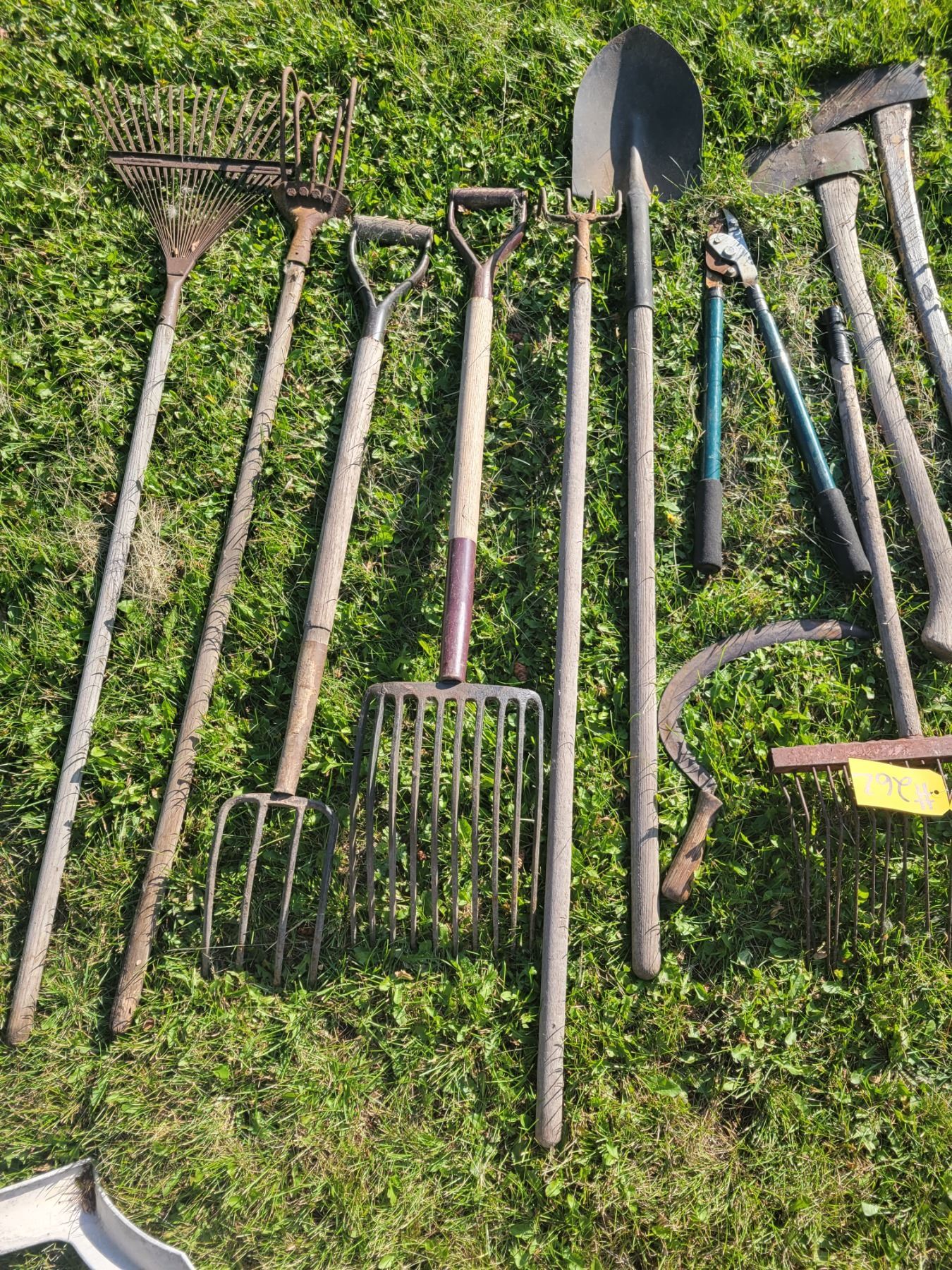 Forks, rakes, mower, wagon etc.