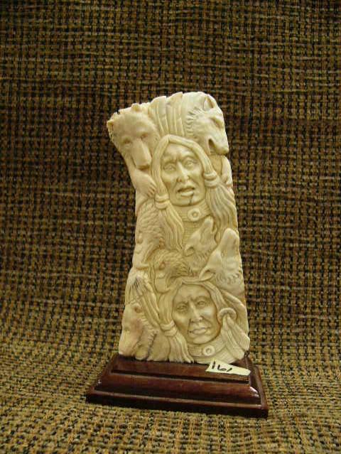 Fossilized ivory with relief carved men surrounded by animals (2)