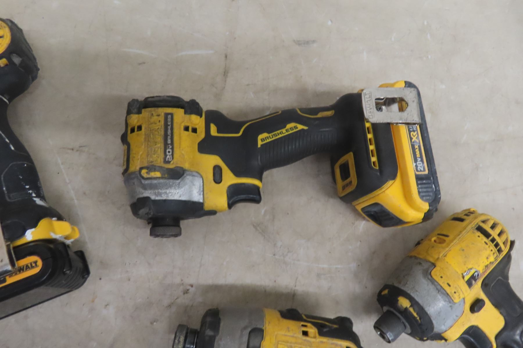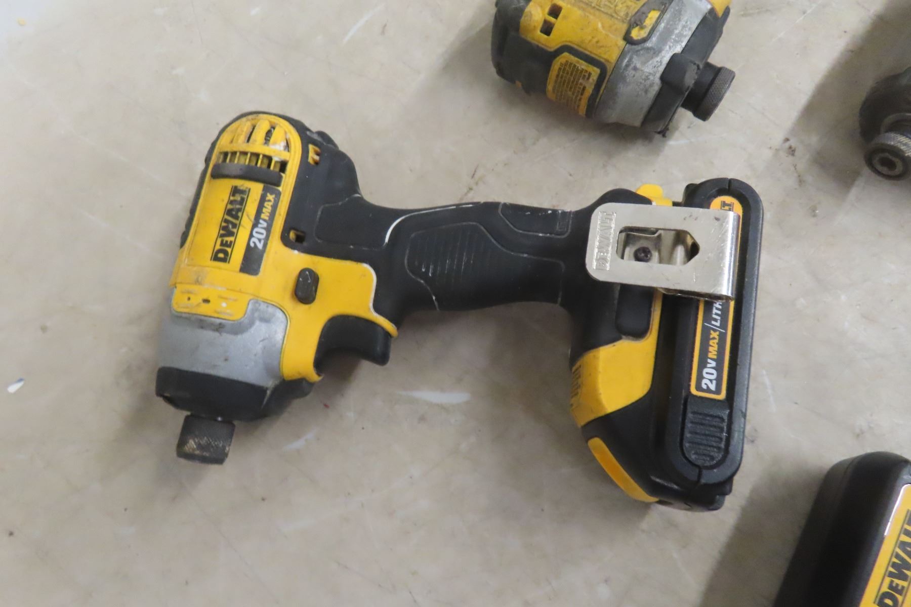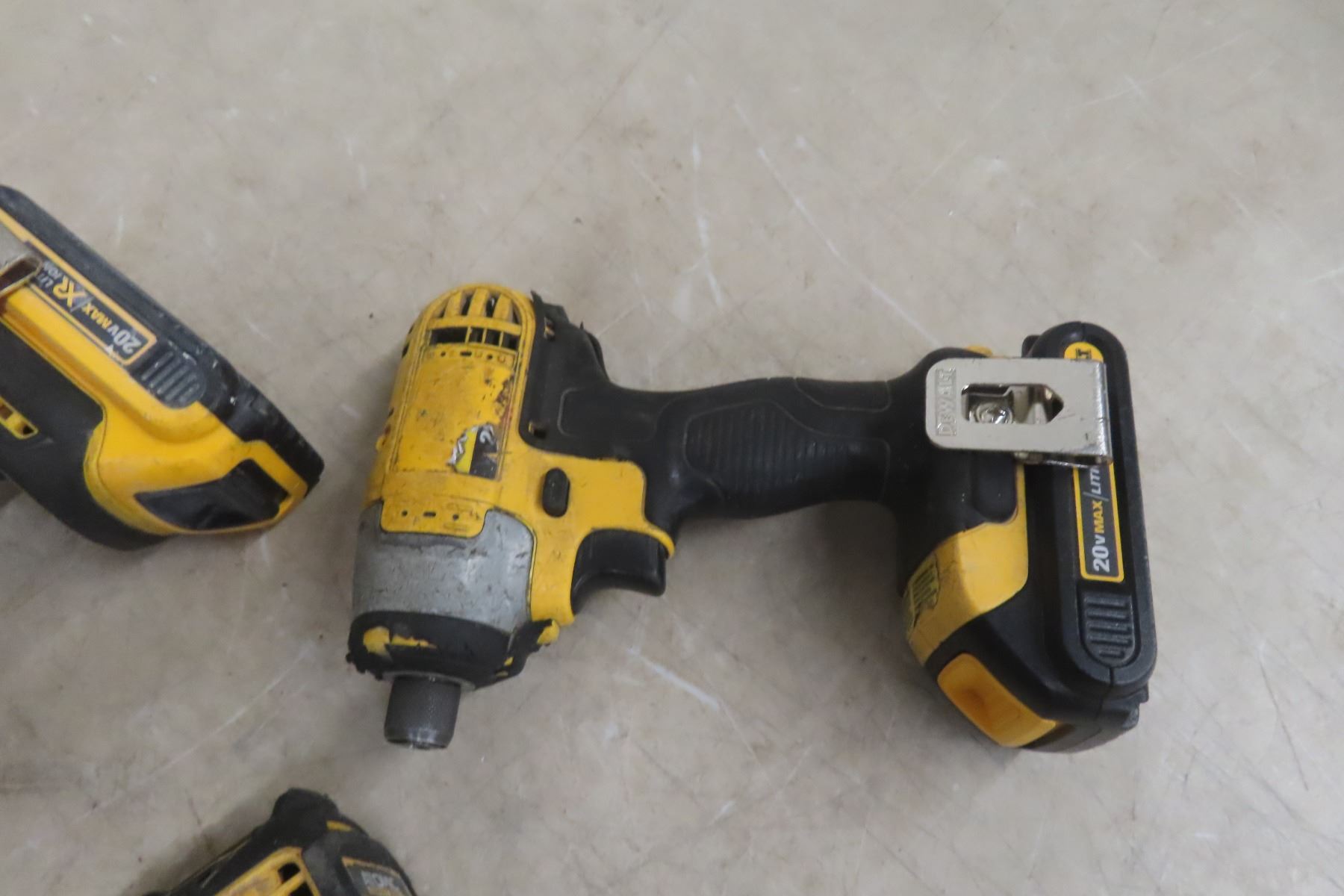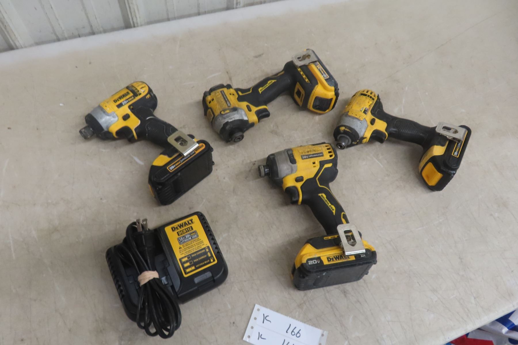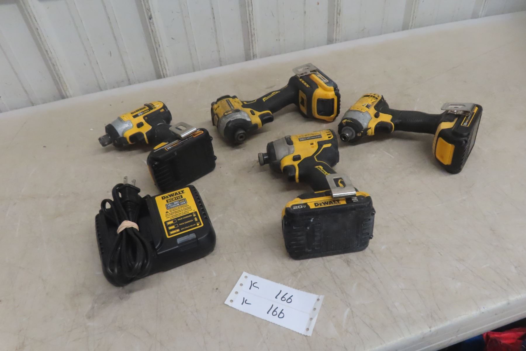 Four DeWalt 20V 1/4" Impact Drivers With Four Batteries and Charger (All Working)