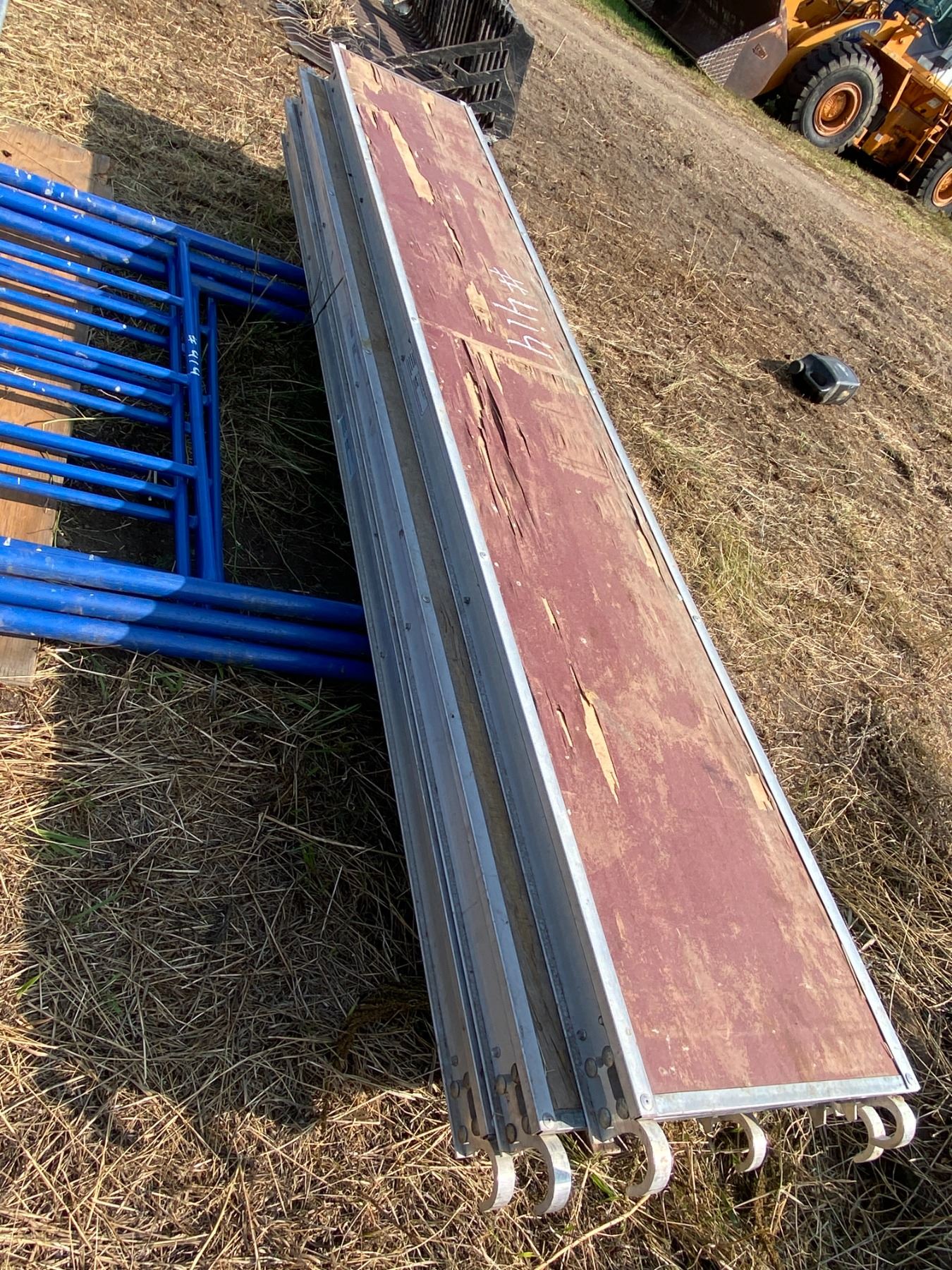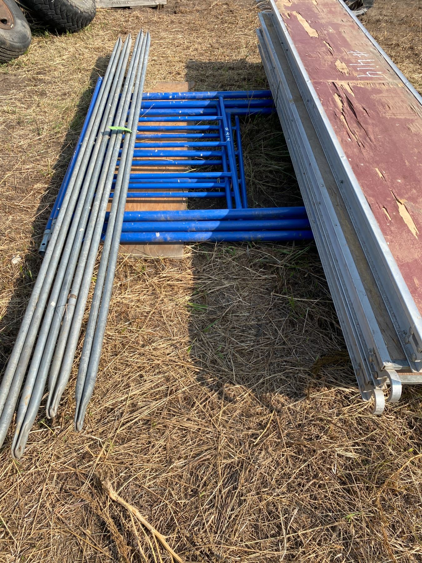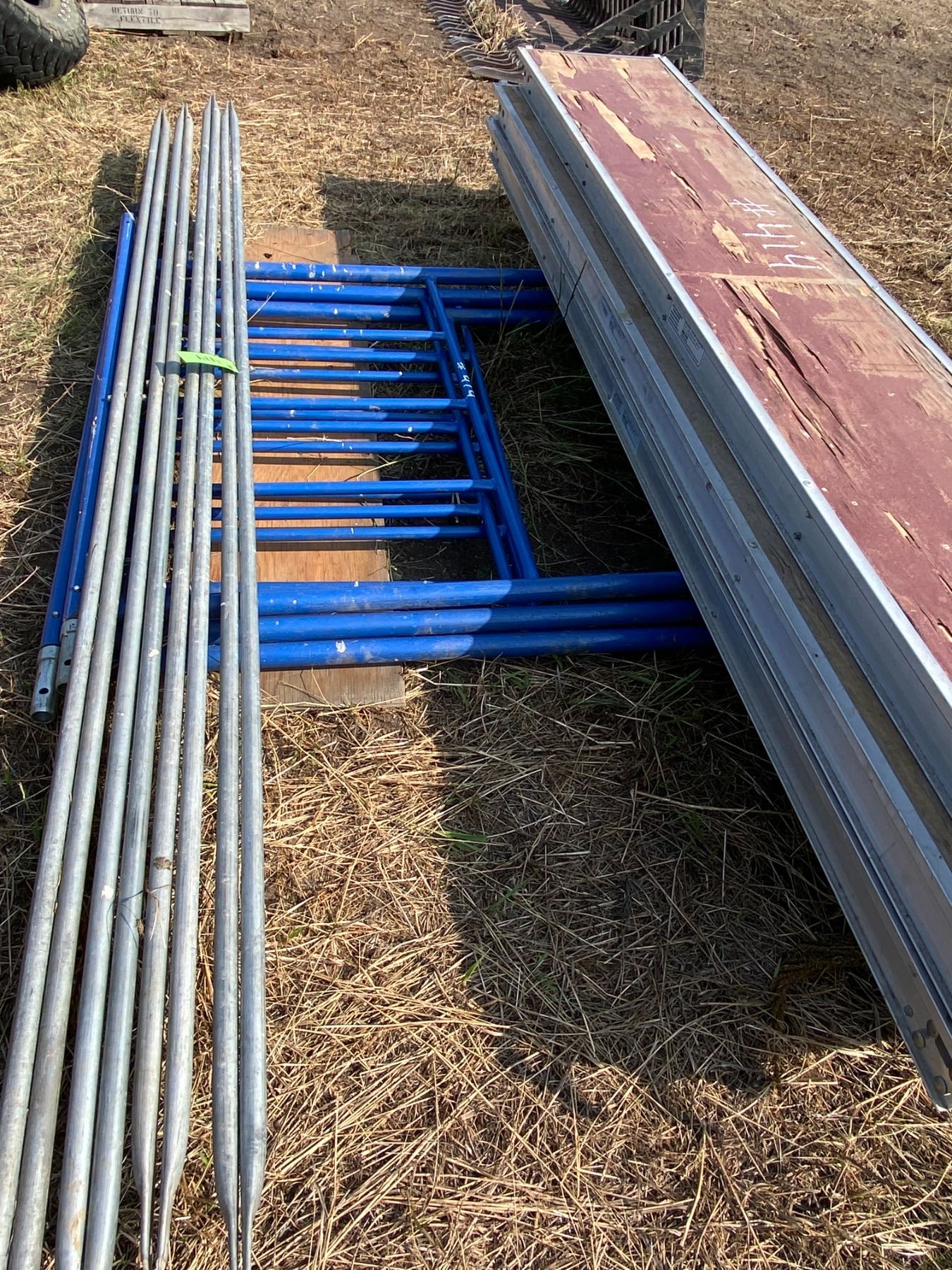 Four Sections of Scaffolding, Braces, 3 Aluminum Decks & 4 Rolling Wheels