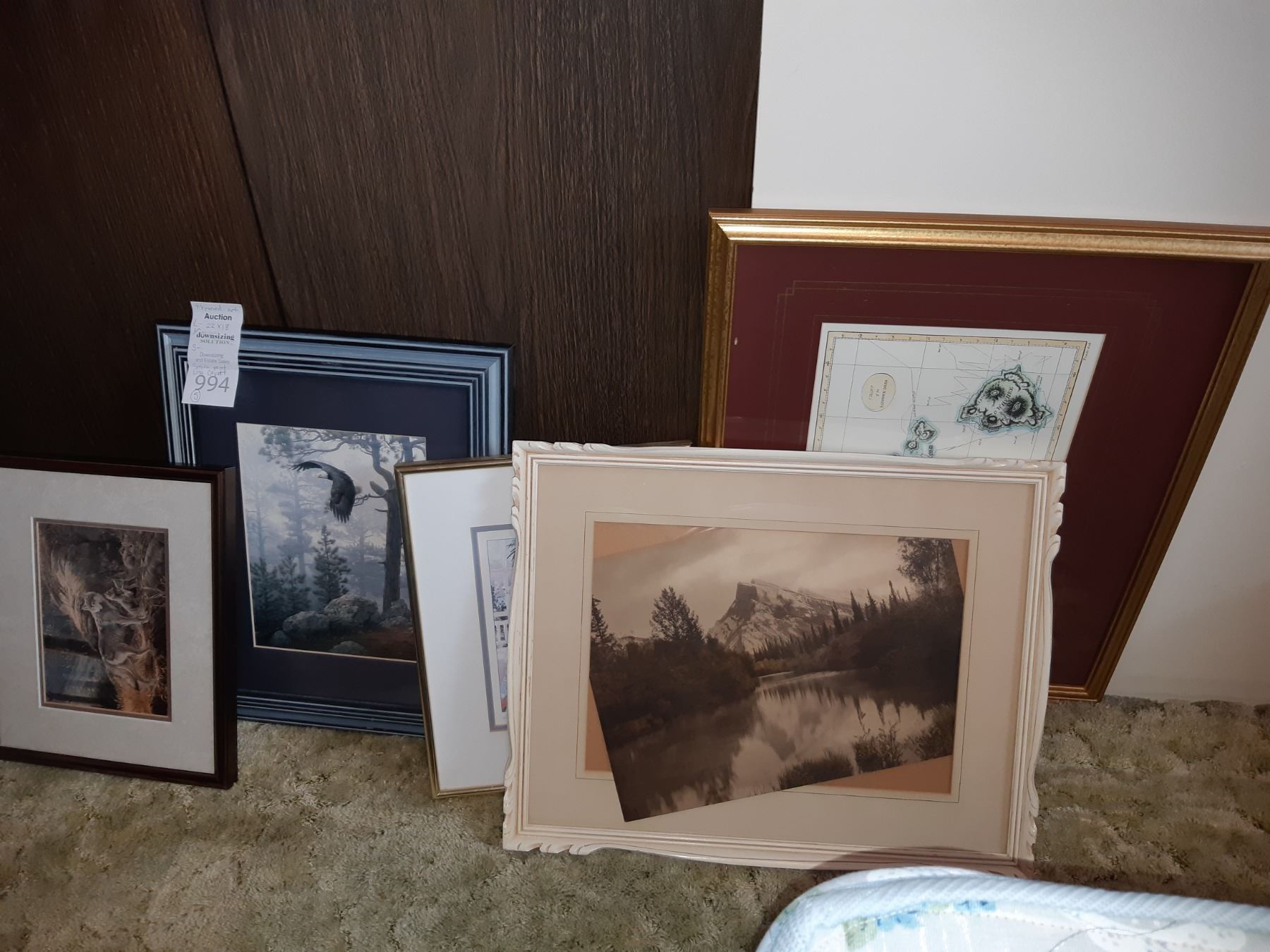 Smith eagle print, Lisa Calvert wolf print and others, largest 22x18, pickup 11am