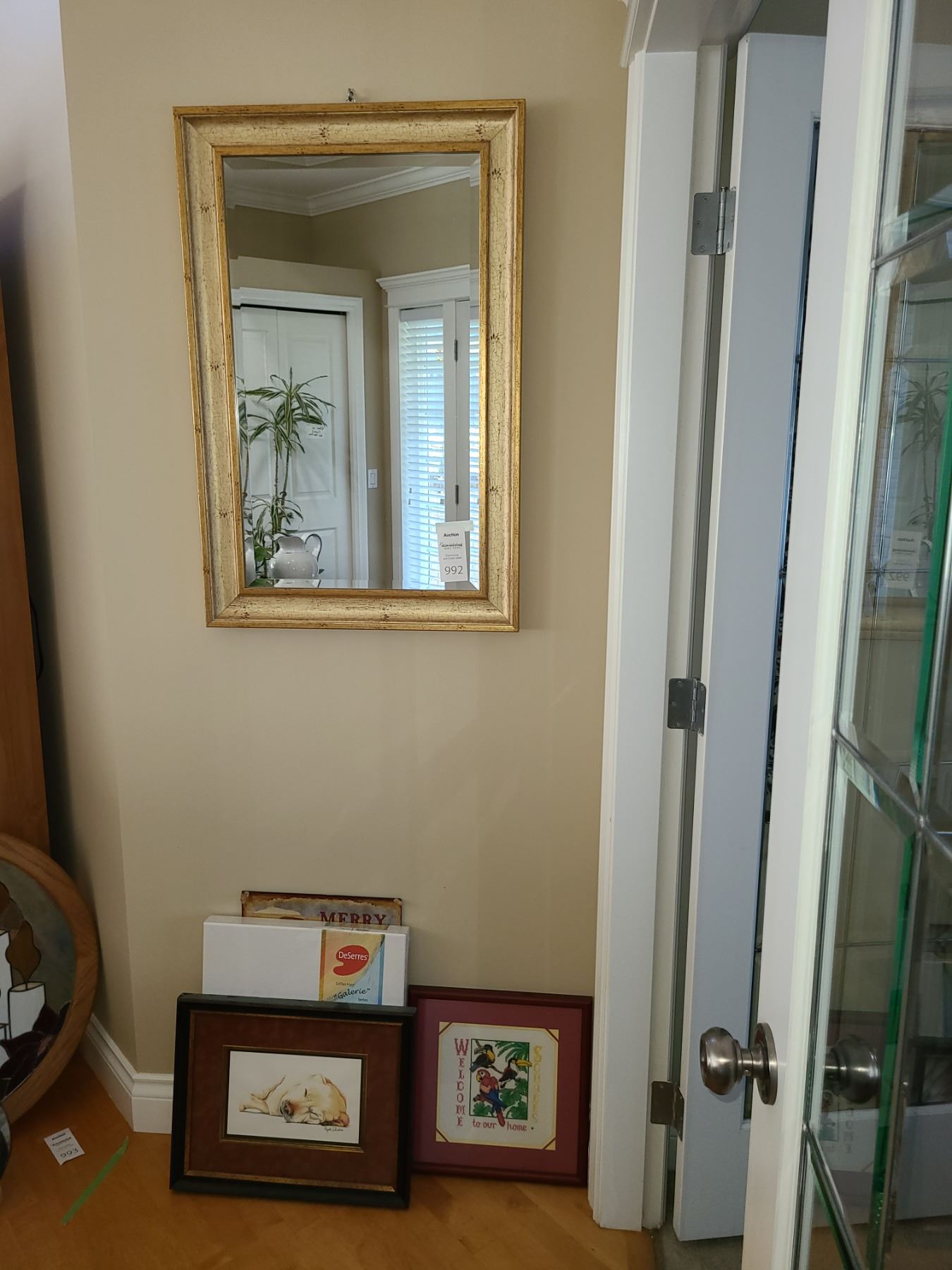 Framed Mirror & and assortment of art. Pickup at 9 am