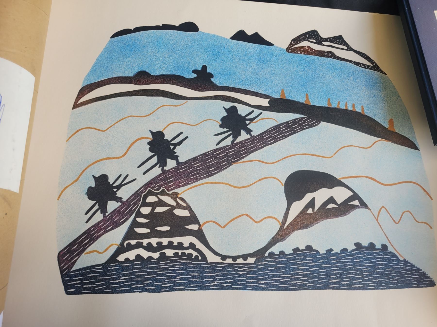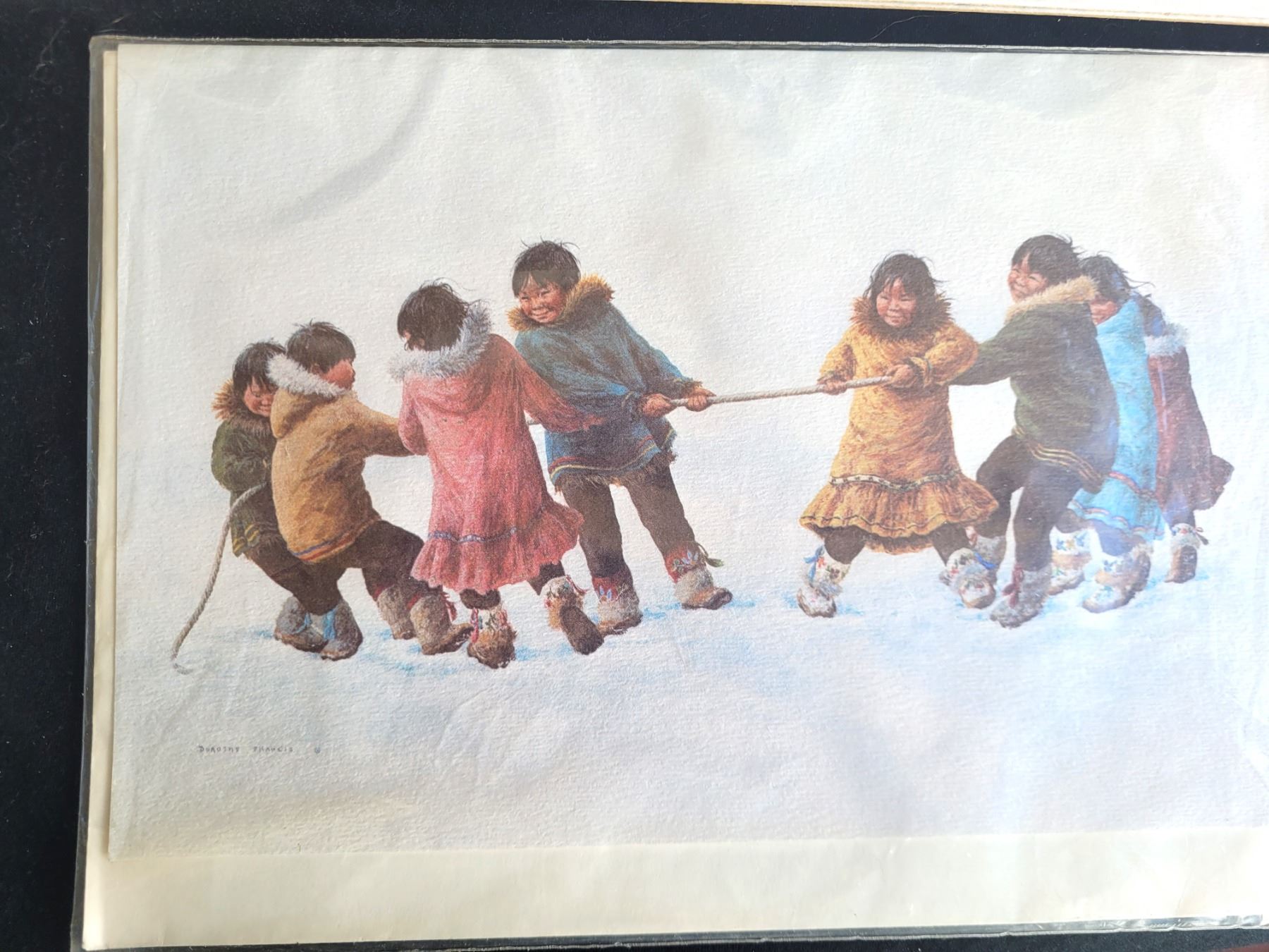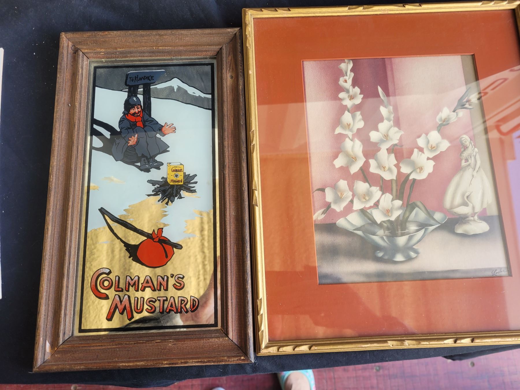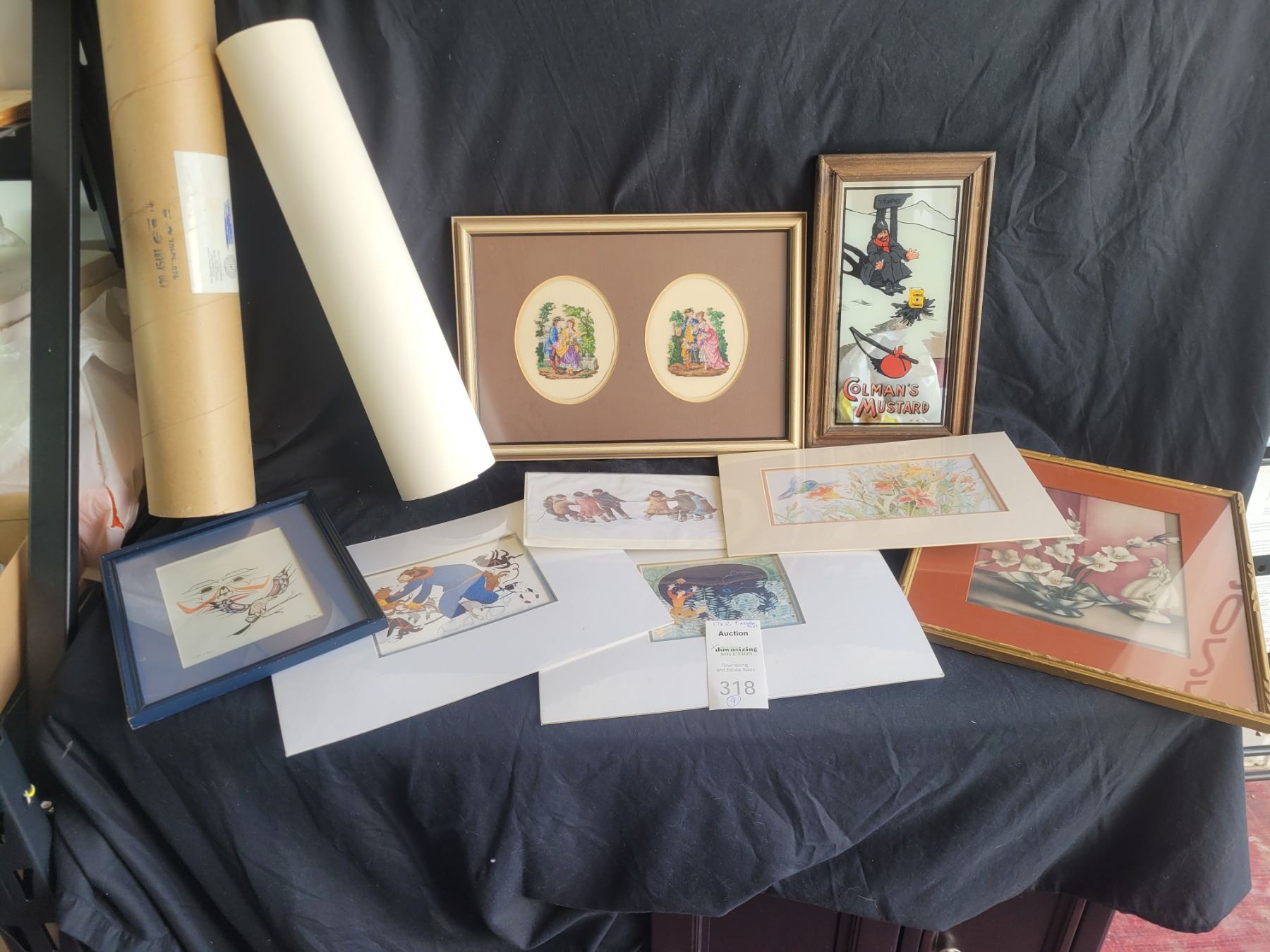 Framed needle point 17x12. Assortment of framed and unframed art. Pickup at 9 am