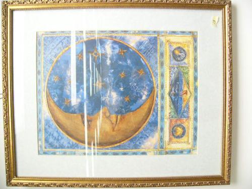 Framed Print of moon and Sea life 21" x 17" F.S. (3)