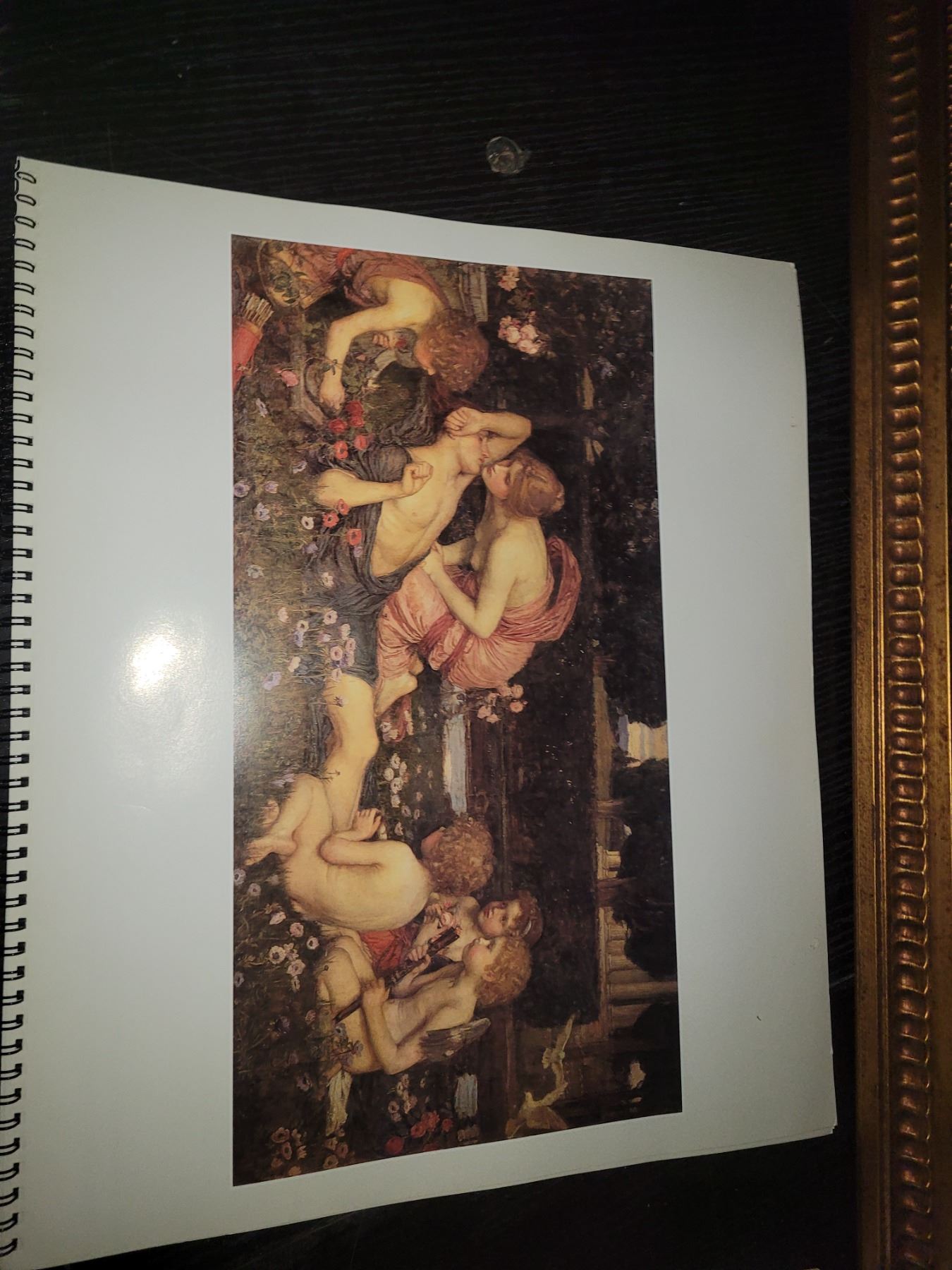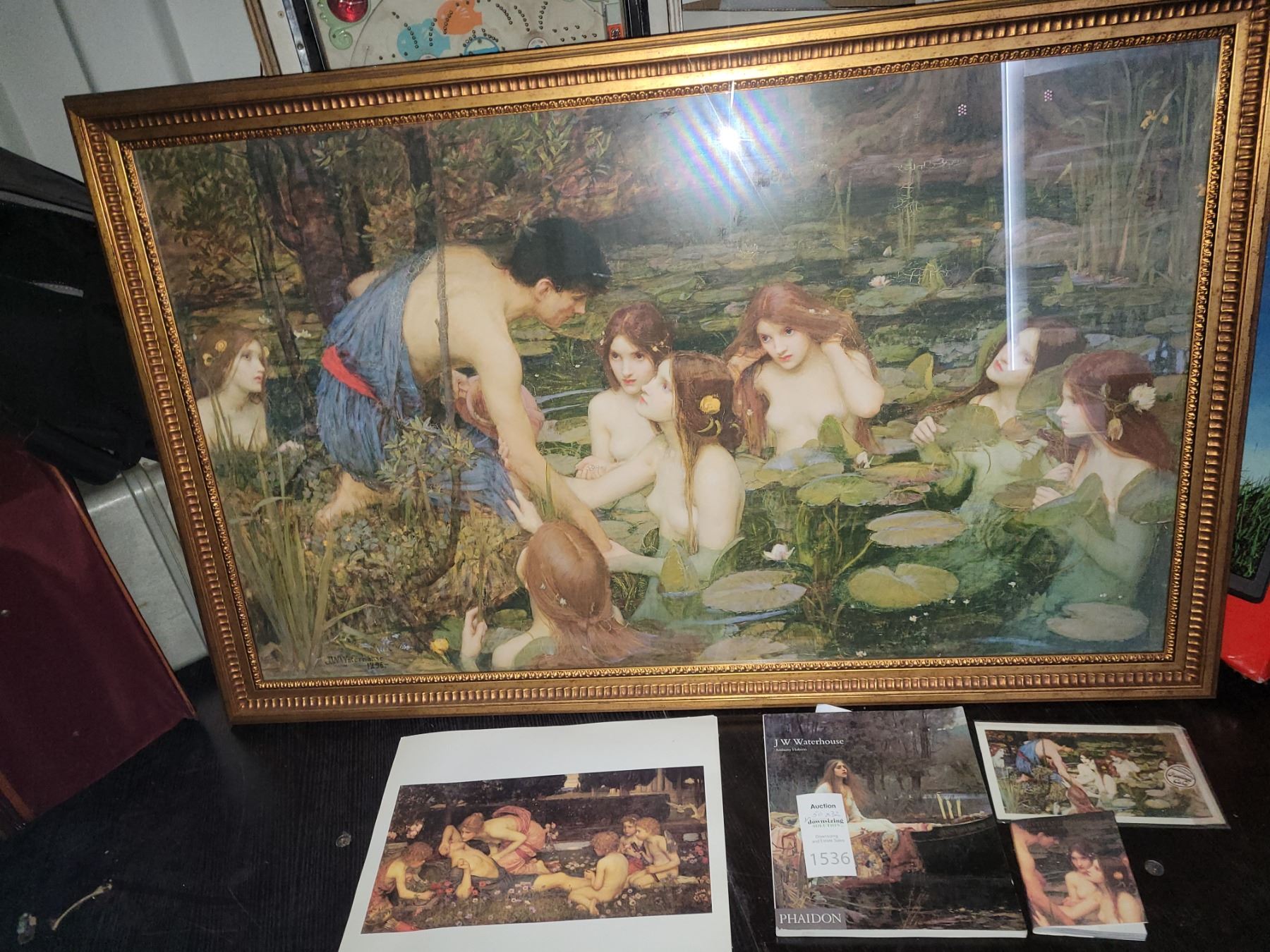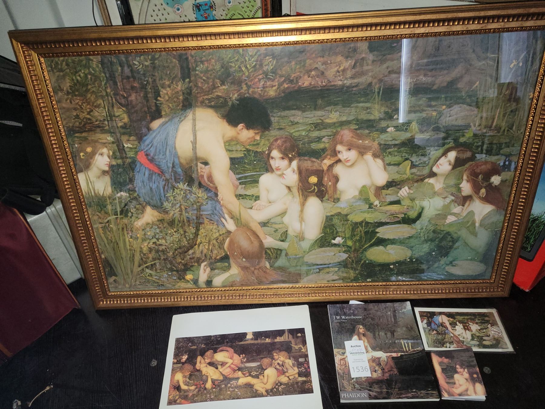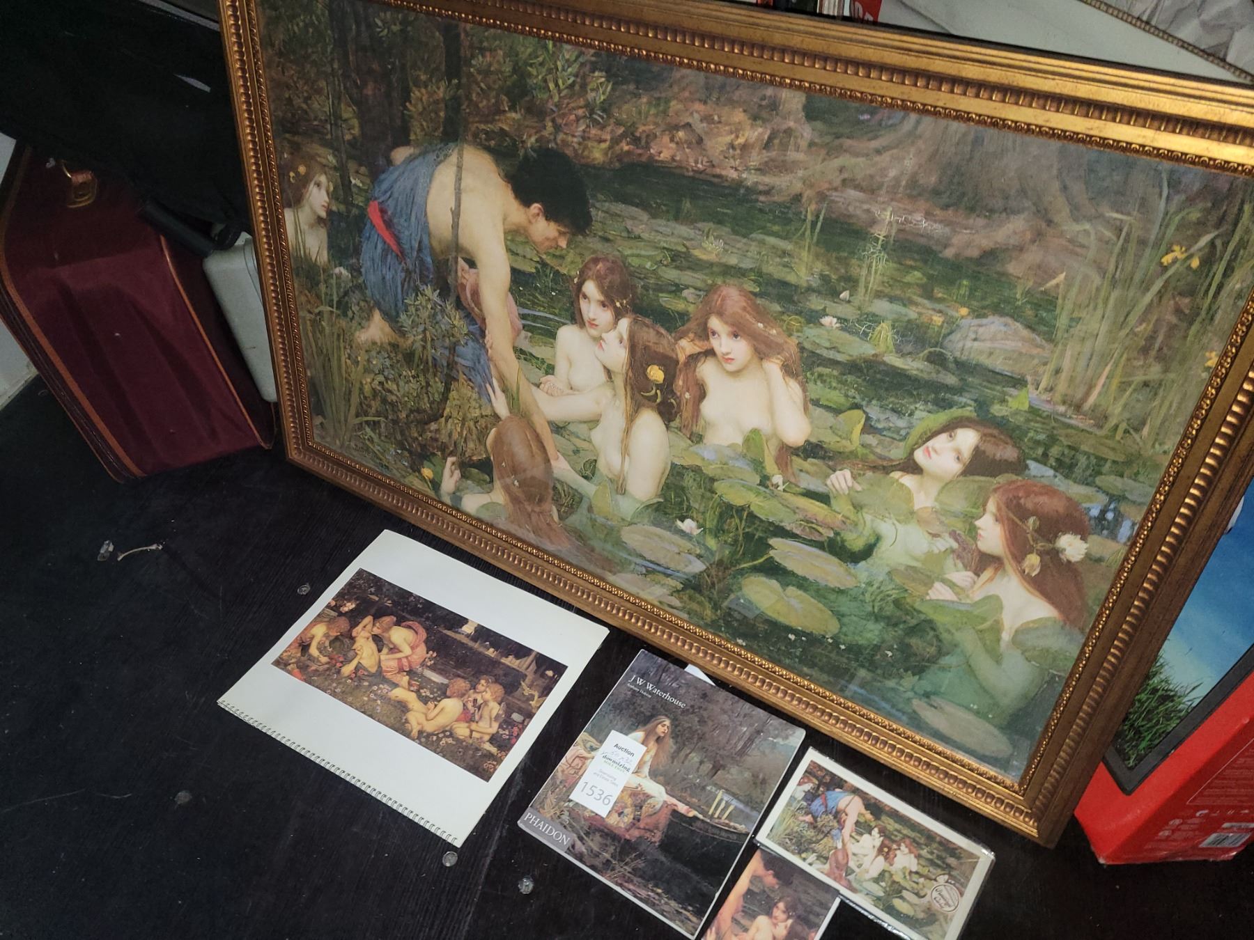 Large framed J W Waterhouse print 50x32. Book and calendar. Pickup at 10 am