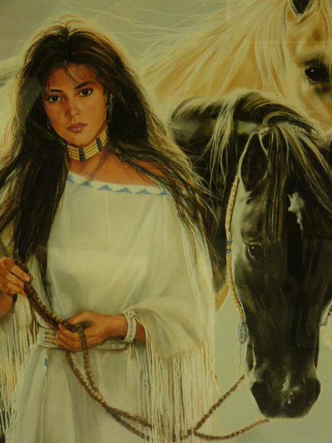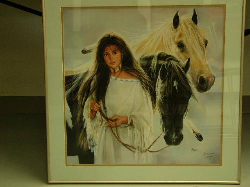 Framed and matted Maija, signed, image size 21.5"x21.5" - Woman with horses (110)