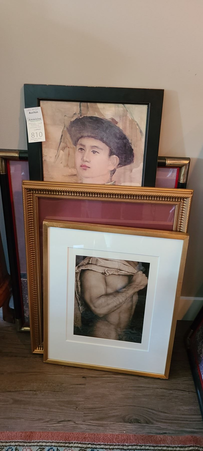 5 framed art pictures, largest 31x25. Pickup 11-am