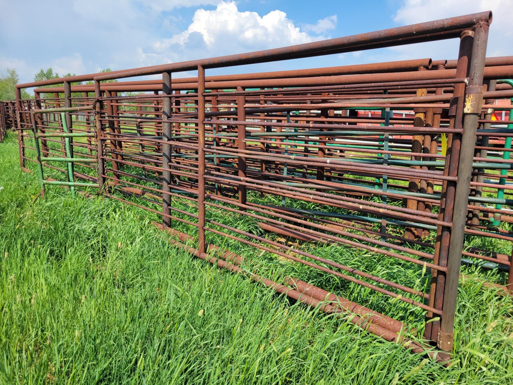 Free standing panel, approx. 288 in. x 67 in., 3 in. pipe, c/w 12 ft gate & 45 in. x 46 in. gate