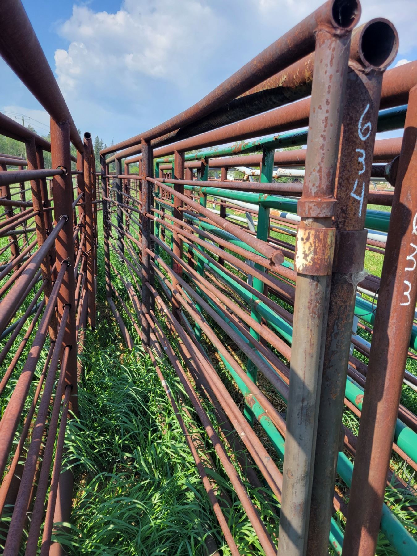 Free standing panel, approx. 288 in. x 67 in., 3 in. pipe, c/w 14 ft gate