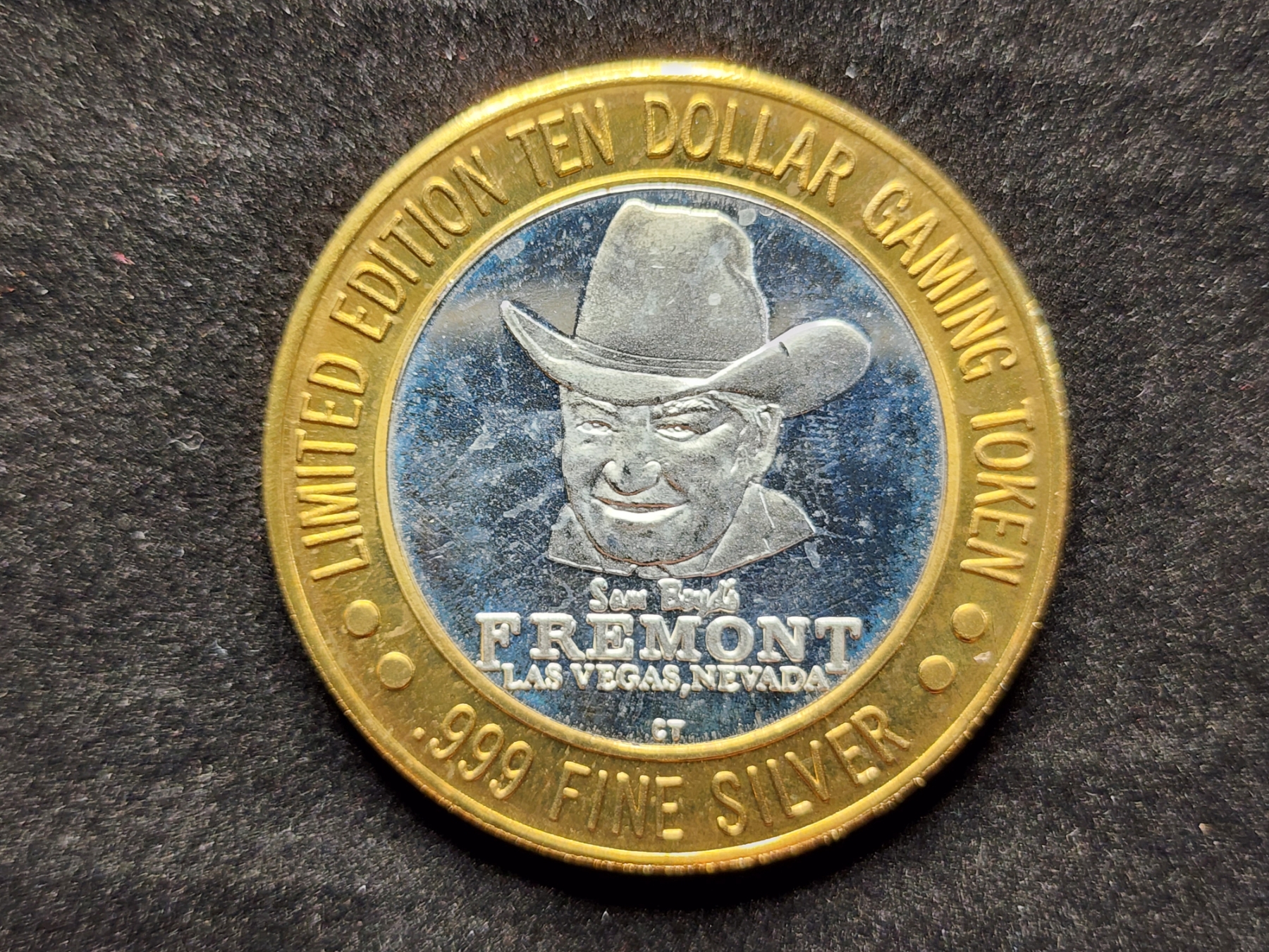 Fremont Casino Las Vegas, Nevada Limited Edition Ten Dollar Gaming Token .999 Fine Silver - About 0.6 Troy Oz Silver