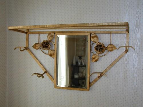 French Gold Gilt Hat/Coat Rack with Beveled Glass Mirror; 25 1/2" wide; 14" tall