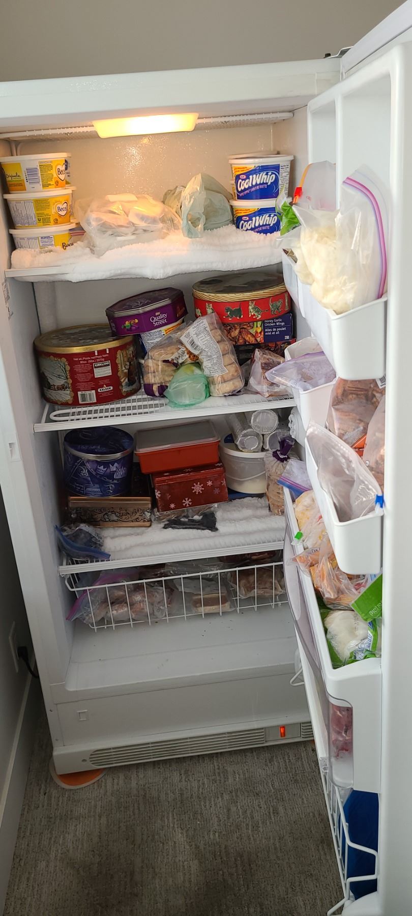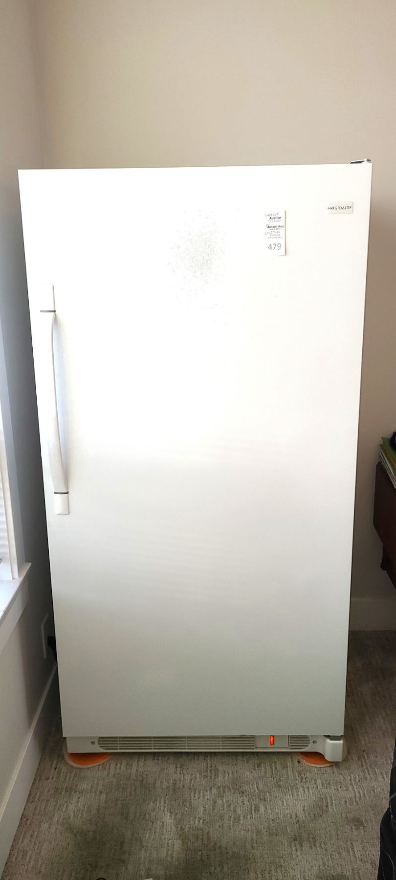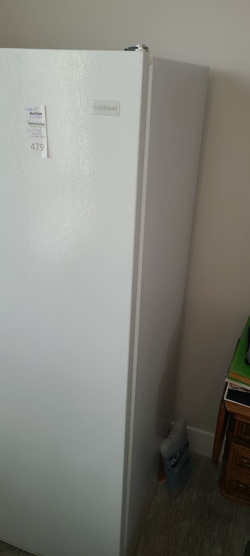 Upright freezer, in working condition, contents not included. 32x27x66. Heavy bring help. Pick up 11-12