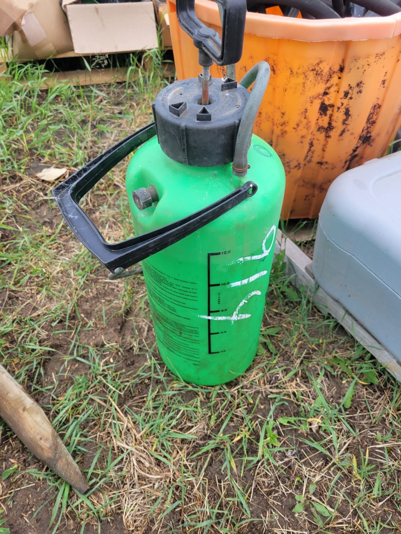 Fuelworks 12v transfer pump. Complete, as new. Approx 3 rolls of approx 4 x 50ft black snow fence, hose, hand spray wand and misc.