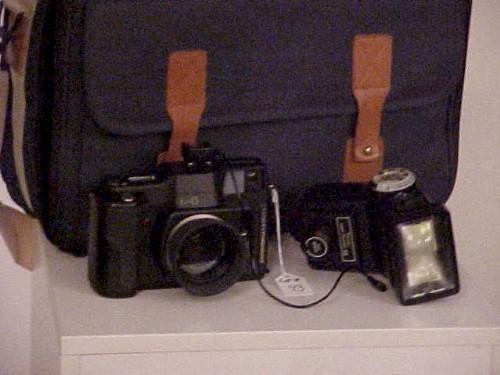 Fugi GA645 120, SN-6051387, instruction manual, original box, and Vivitar 285 flash.