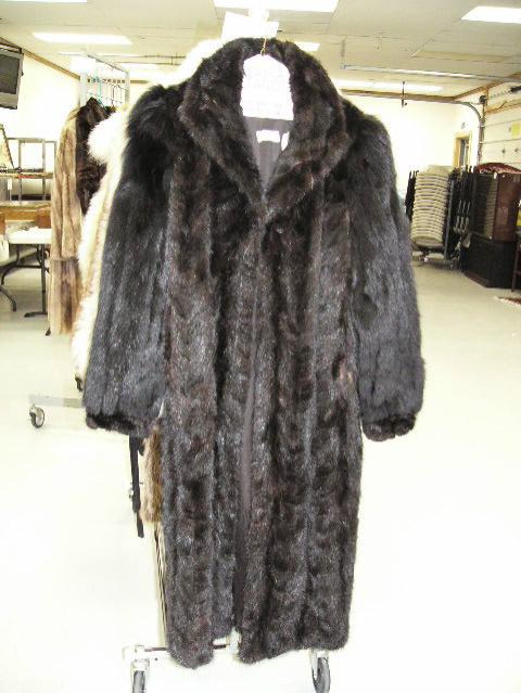 Full length brown mink coat with black sable sleeves approx. size L (28)