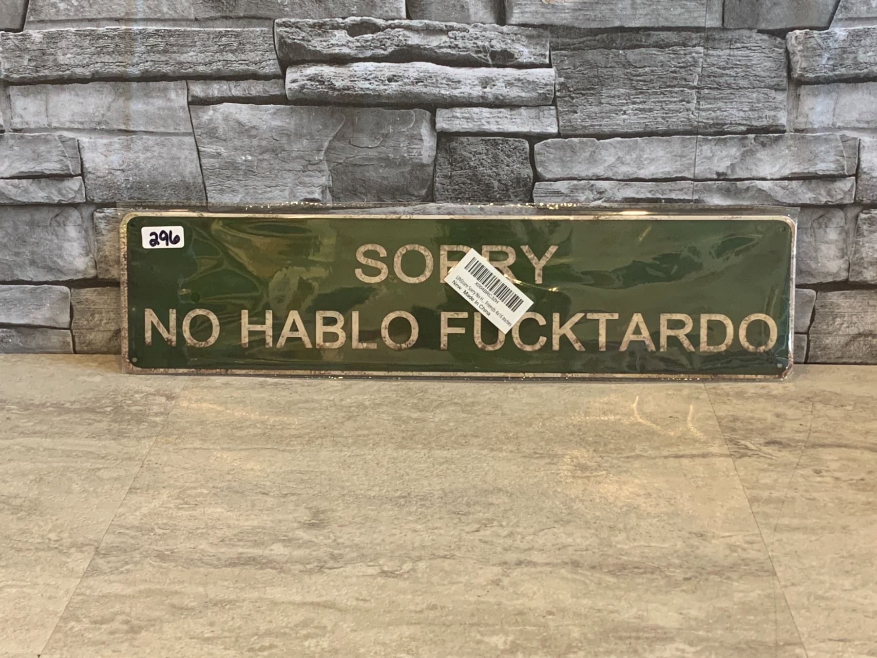 Funny Sign " Sorry No Hablo Fucktardo" - 4" x 16" - New