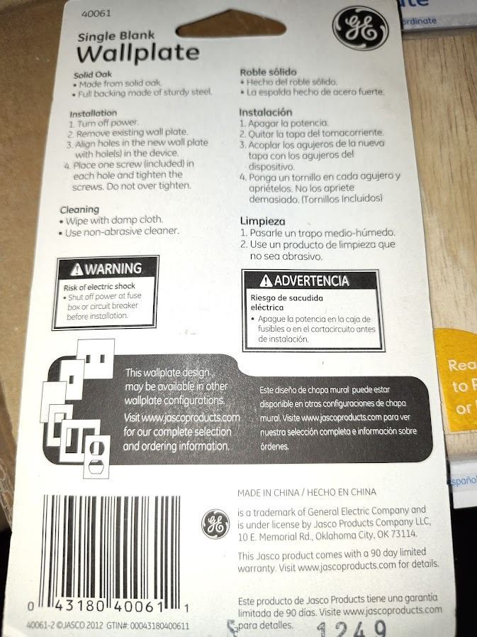 GE SOLID WOOD UNFINISHED WALL PLATES