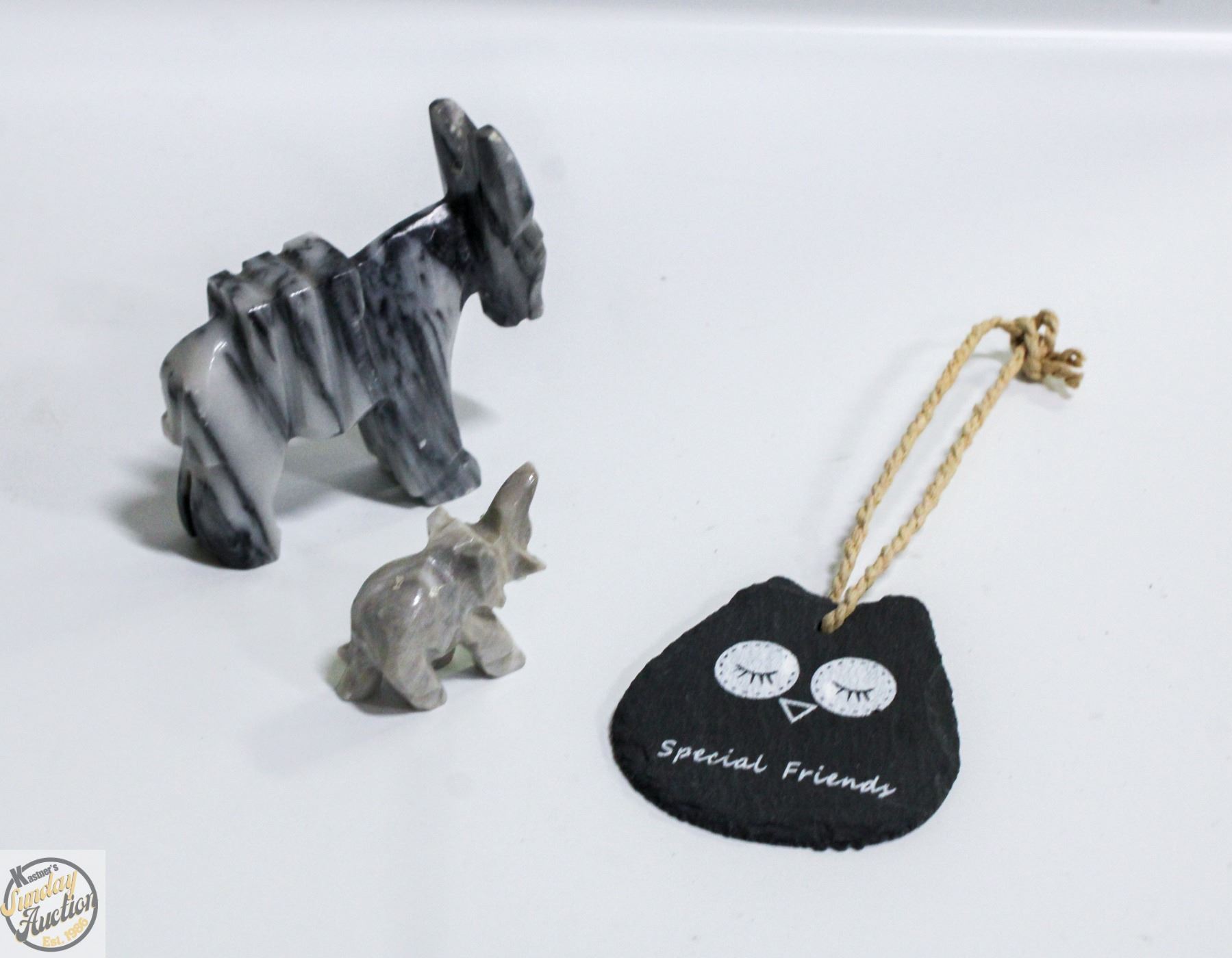 GENUINE STONE CARVINGS - ELEPHANT, DONKEY +