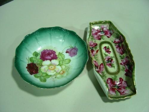 LOT OF 2 GERMANY PAINTED BOWL SMALL CHIP ON EDGE AND PAINTED VEGETABLE TRAY