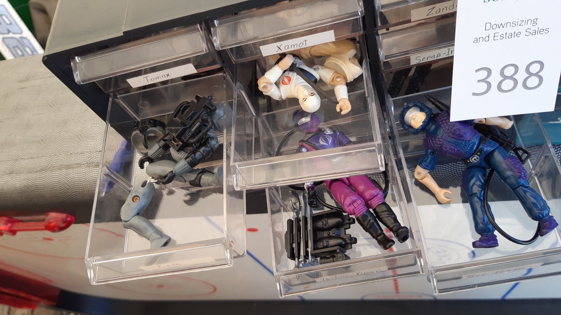 Approximately 40 GI Joes 3" in drawers most have names on drawers. Pickup at 10 am