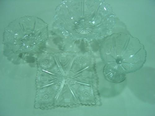 LOT OF 4 GLASSWARE 2-BOWLS, TRAY AND SMALL COMPOTE