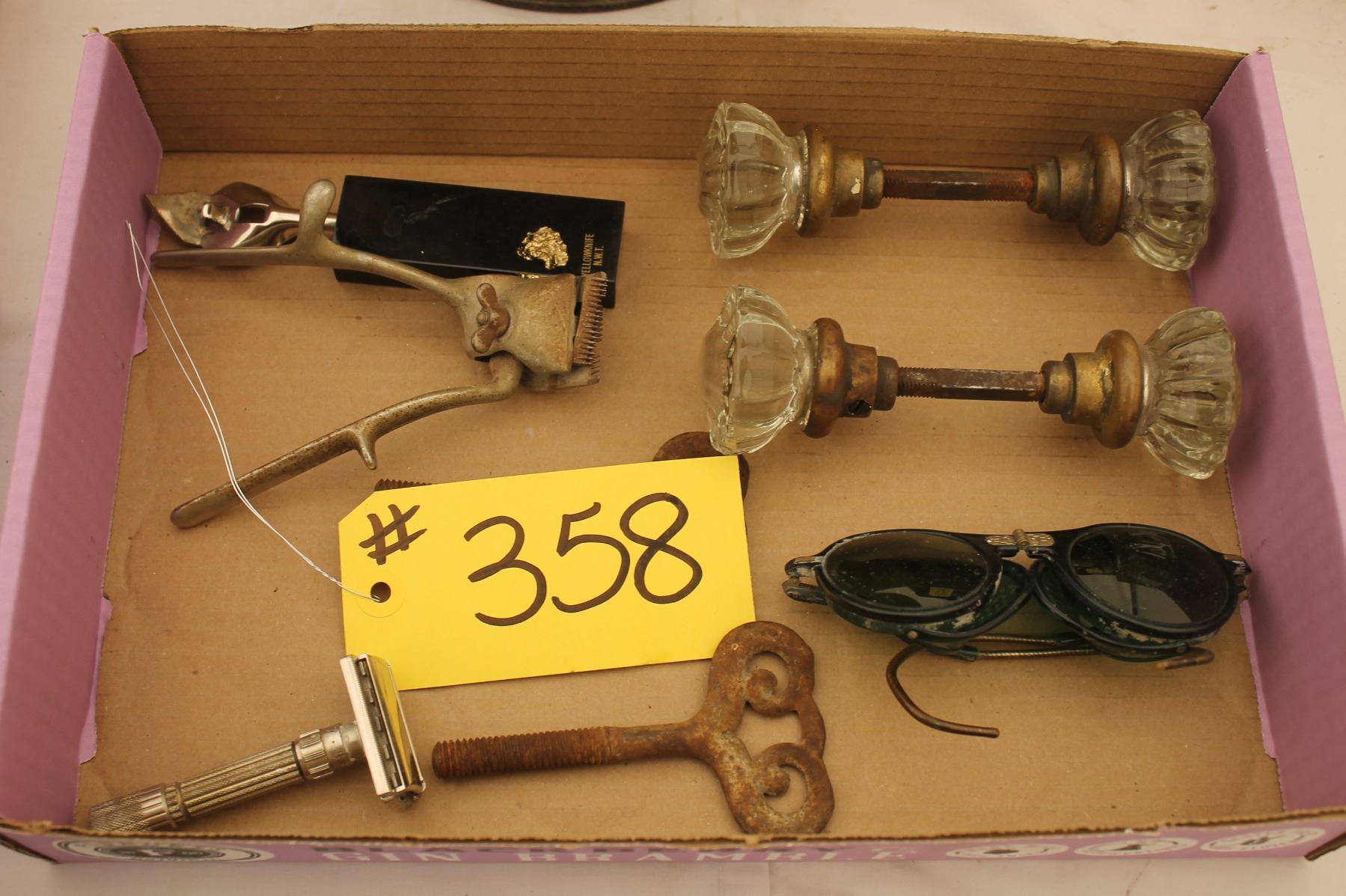 GOGGLES, HAIR CLIPPER, RAZOR,NWT BOTTLE OPENER, 2 - GLASS DOOR KNOB SETS,2 METAL PIECES FOR WASH MACHINE