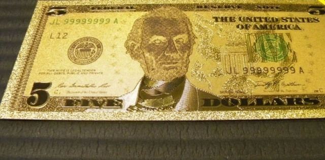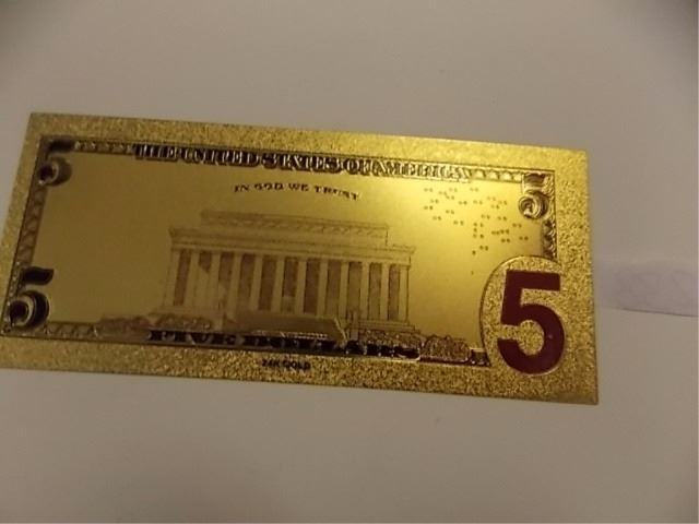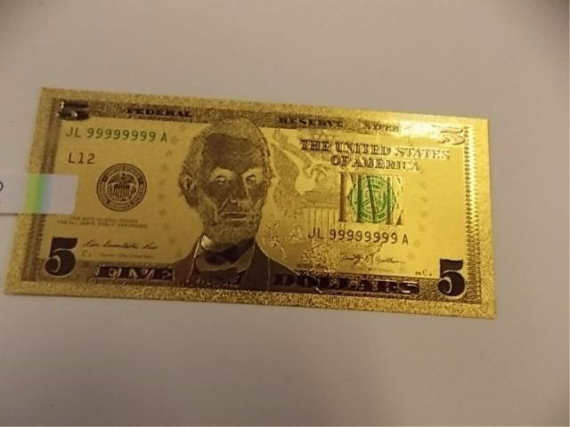 GOLD FOIL BILL - 24 K - USA $5 - not legal tendar