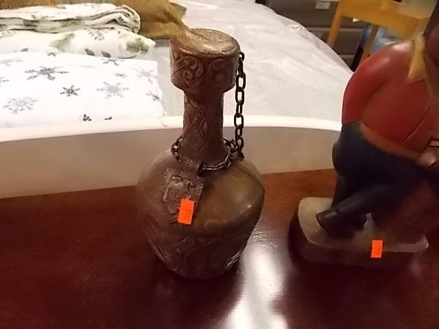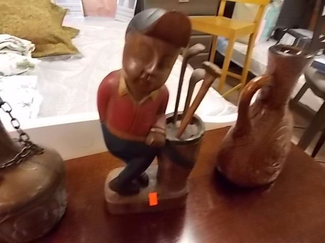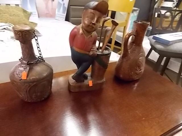 GOLFING DUDE & 2 LEATHER BOUND BOTTLES